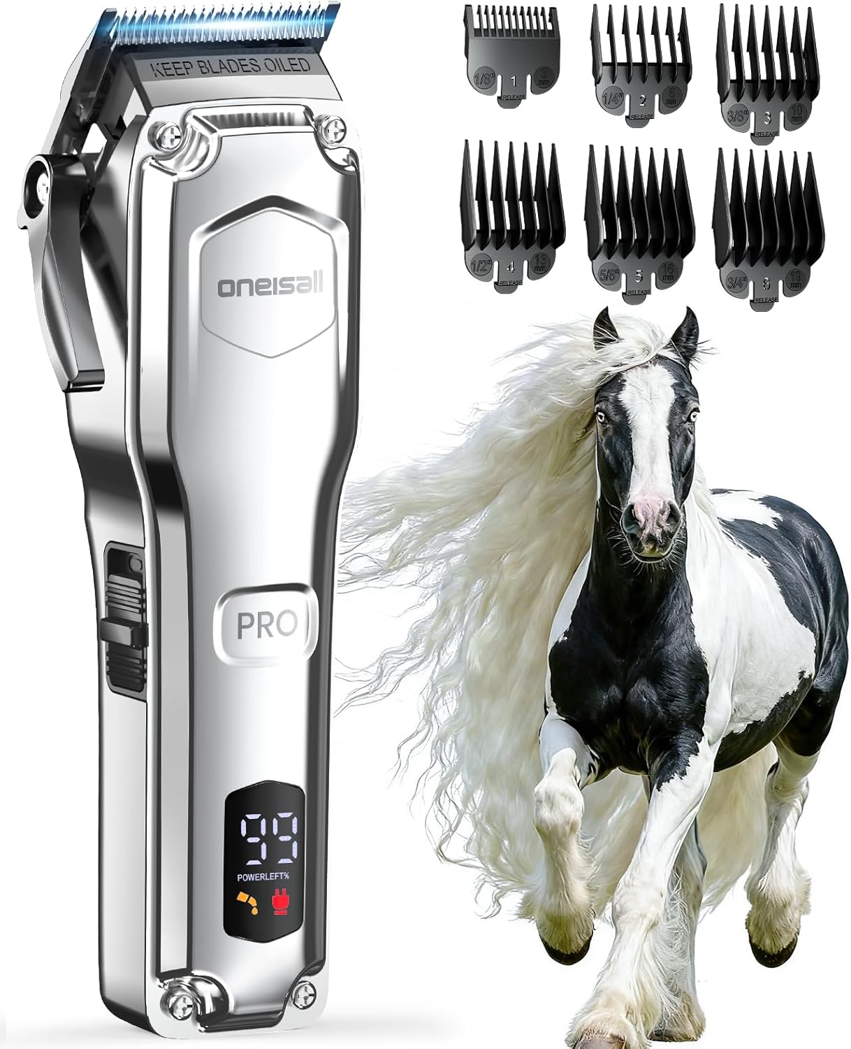 Oneisall Tondeuse sans fil silencieuse pour chevaux, rechargeable avec 6 accessoires et lame amovible