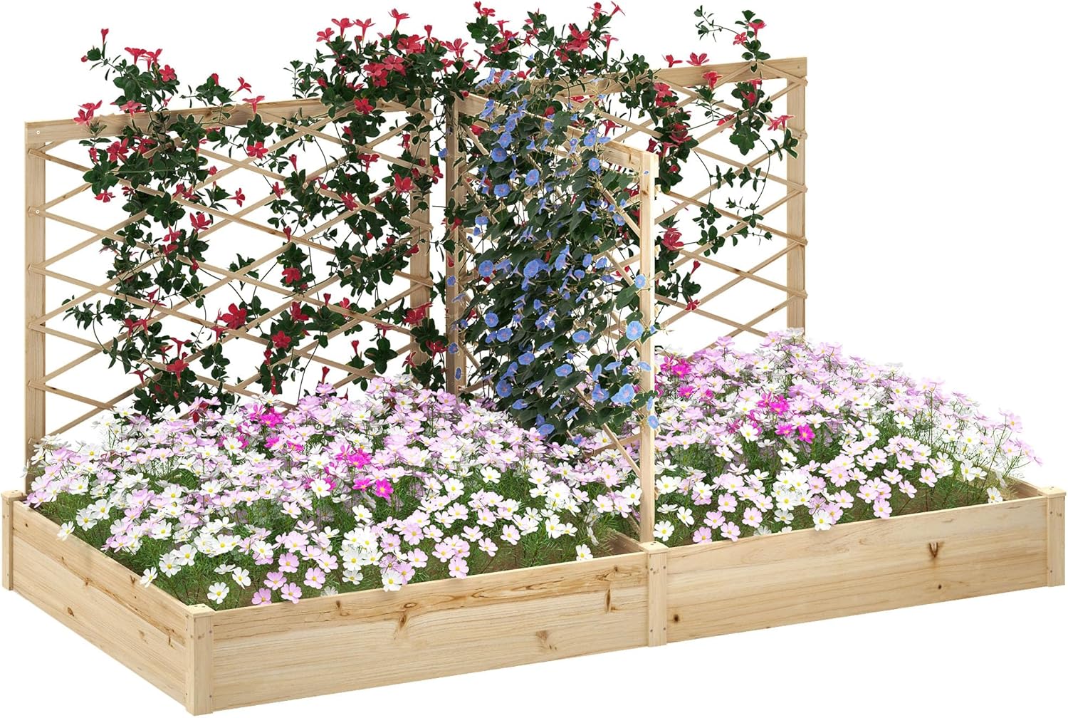 Outsunny Jardinière surélevée avec 3 treillis modulables et 2 bacs à planter, bois naturel verni (222 x 114 x 109 cm)