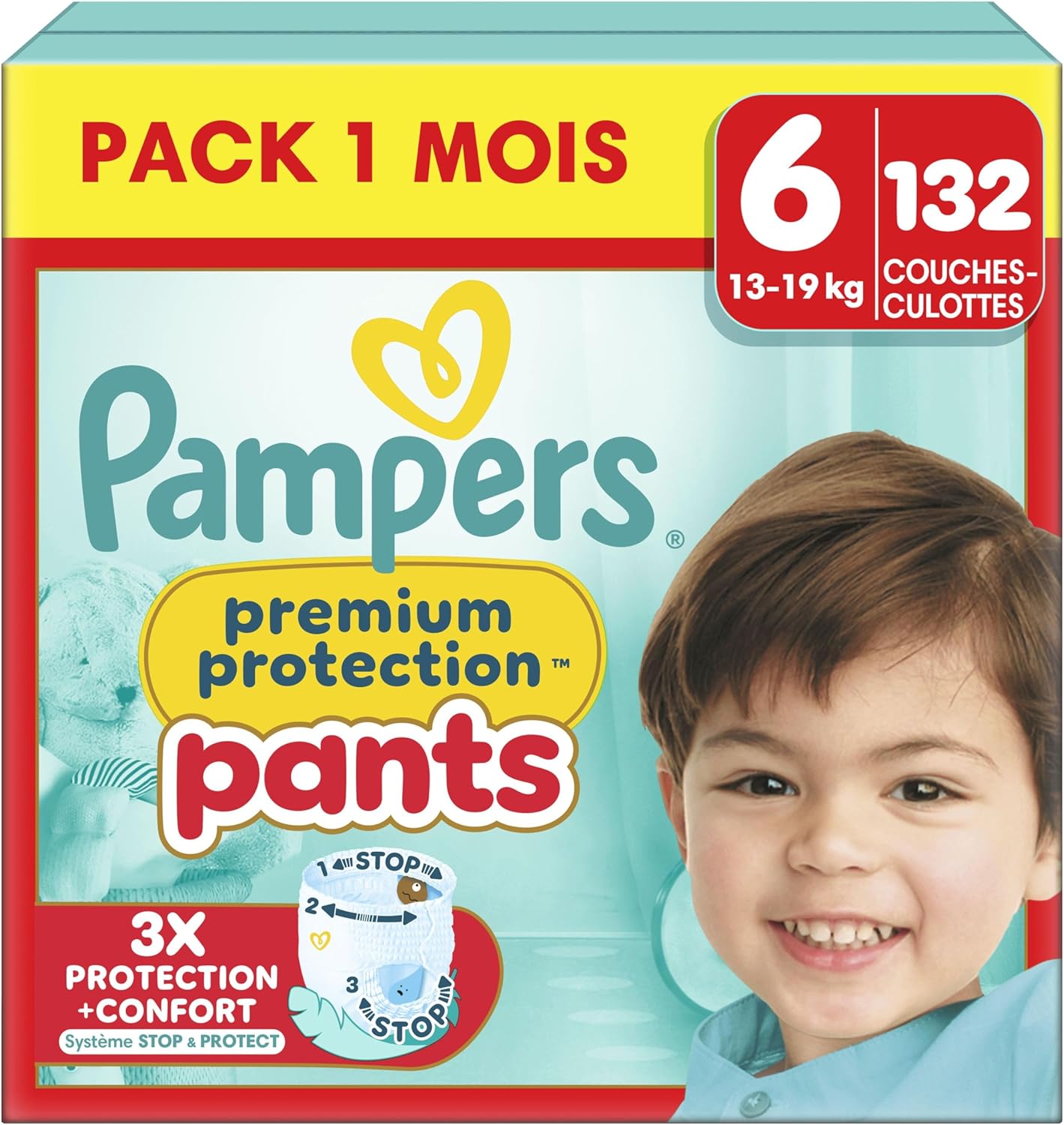Pampers Premium Protection Pants Taille 6 (15 kg+), 132 couches-culottes — protection 360° contre les fuites