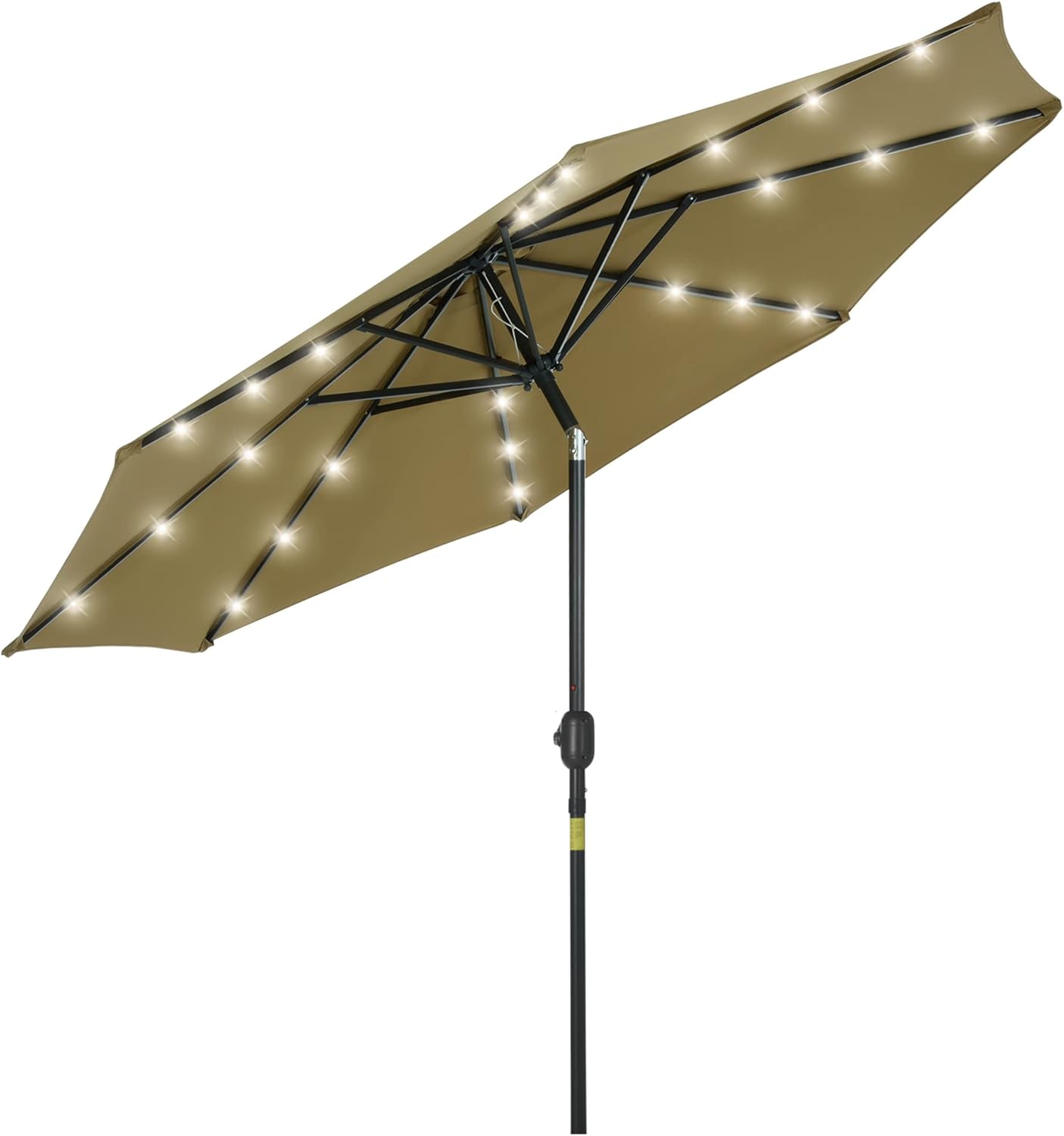 Parasol de jardin droit octogonal Outsunny, inclinable, lumineux solaire avec 24 LED (Ø 2,7 x 2,4 m)