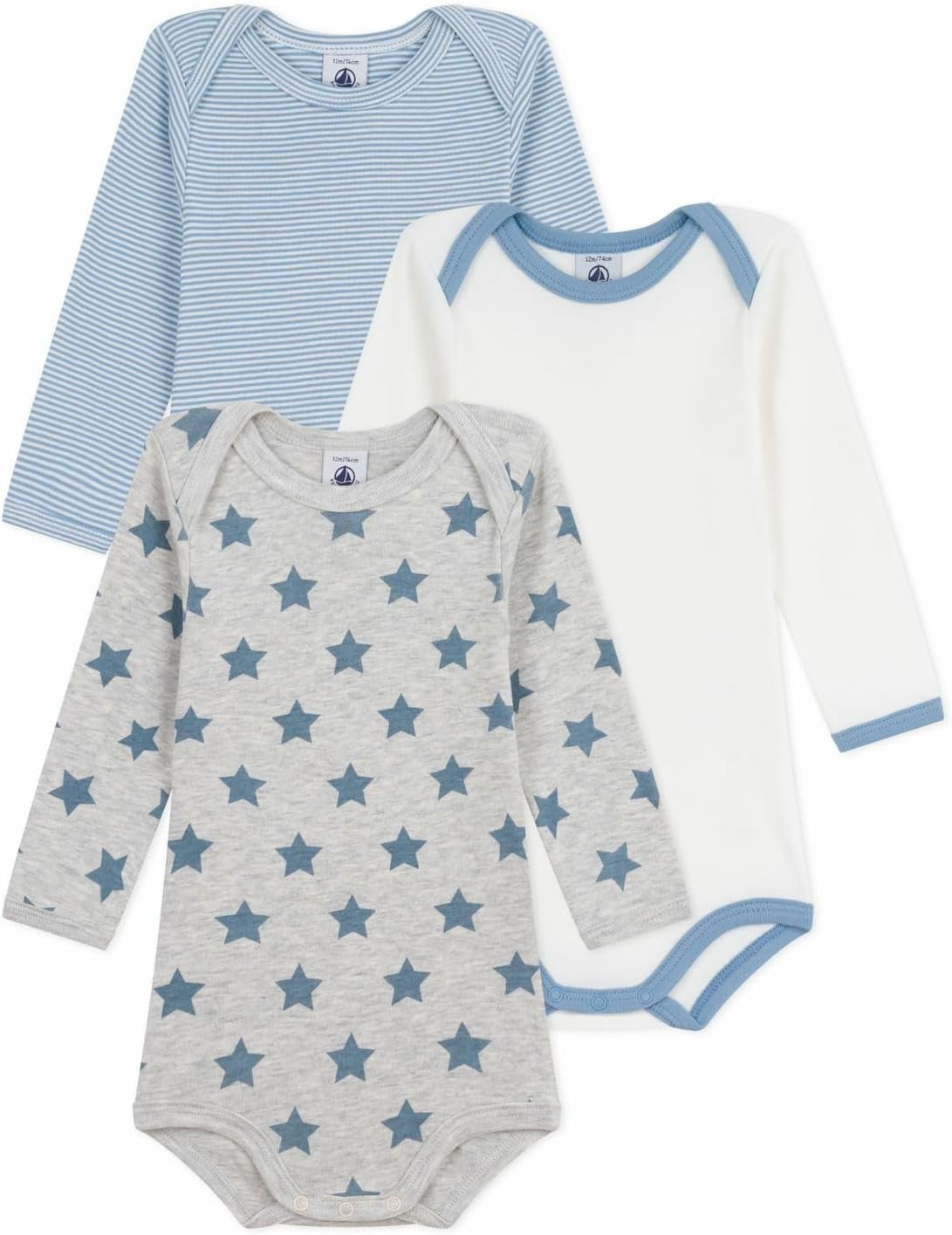Petit Bateau Lot de 3 bodies manches longues coton étoiles bébé –Mixte