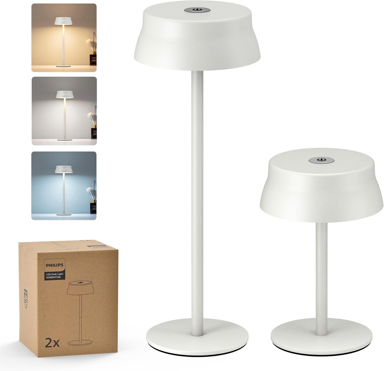 Philips Lampe de table LED sans fil portable étanche à batterie rechargeable – 2 hauteurs, contrôle tactile et 3 couleurs