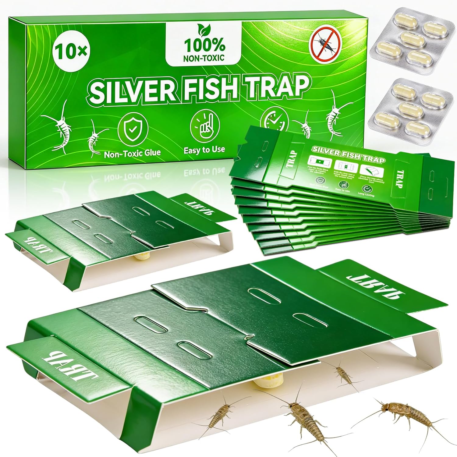 L’idée de départ ici est claire : cibler les habitudes des lépismes argentés et, plus largement, d’autres insectes rampants. Le tout dans un format compact, conçu pour être placé dans des endroits discrets (coins, interstices, zones difficiles d’accès). Et comme la boîte contient 10 pièges emballés individuellement, vous pouvez les utiliser petit à petit tout en gardant le reste au propre.