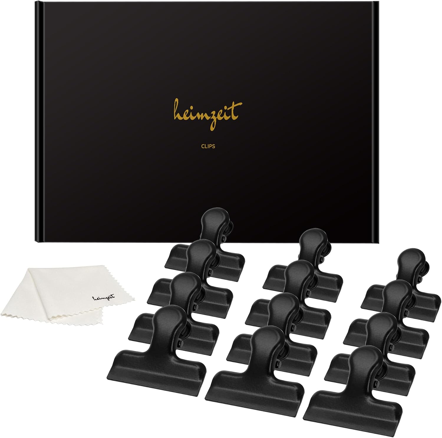 Pinces de fermeture Heimzeit en acier inoxydable – 12 pièces pour sachets alimentaires et documents, noir