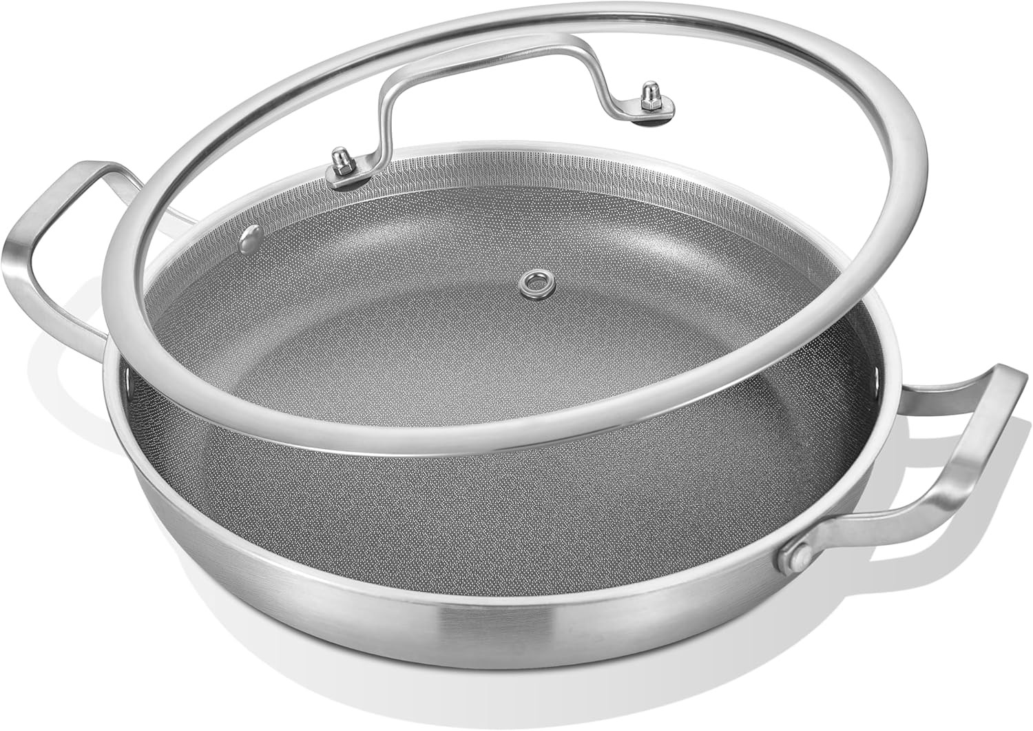 - Nom : Inqibee Poêle à paella 30 cm en inox antiadhésive avec couvercle