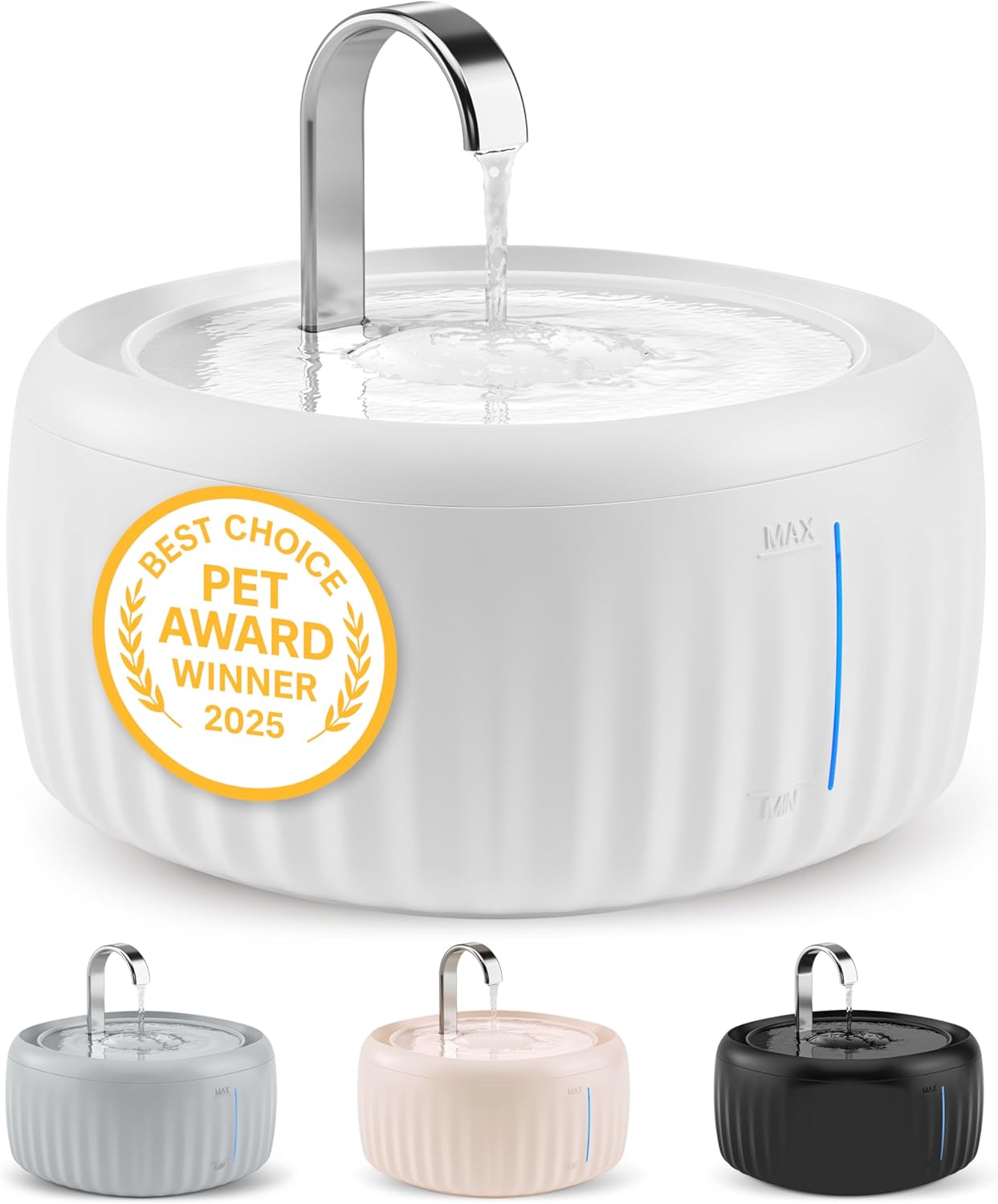 - Pretty Paw Aqua Flow – Fontaine à eau pour chat 3L silencieuse avec filtration au charbon actif