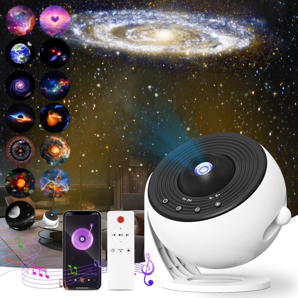 Projecteur de ciel étoilé Adiwo Projecteur Ciel Etoile (planétarium) avec 13 disques et rotation 360°, haut-parleur Bluetooth