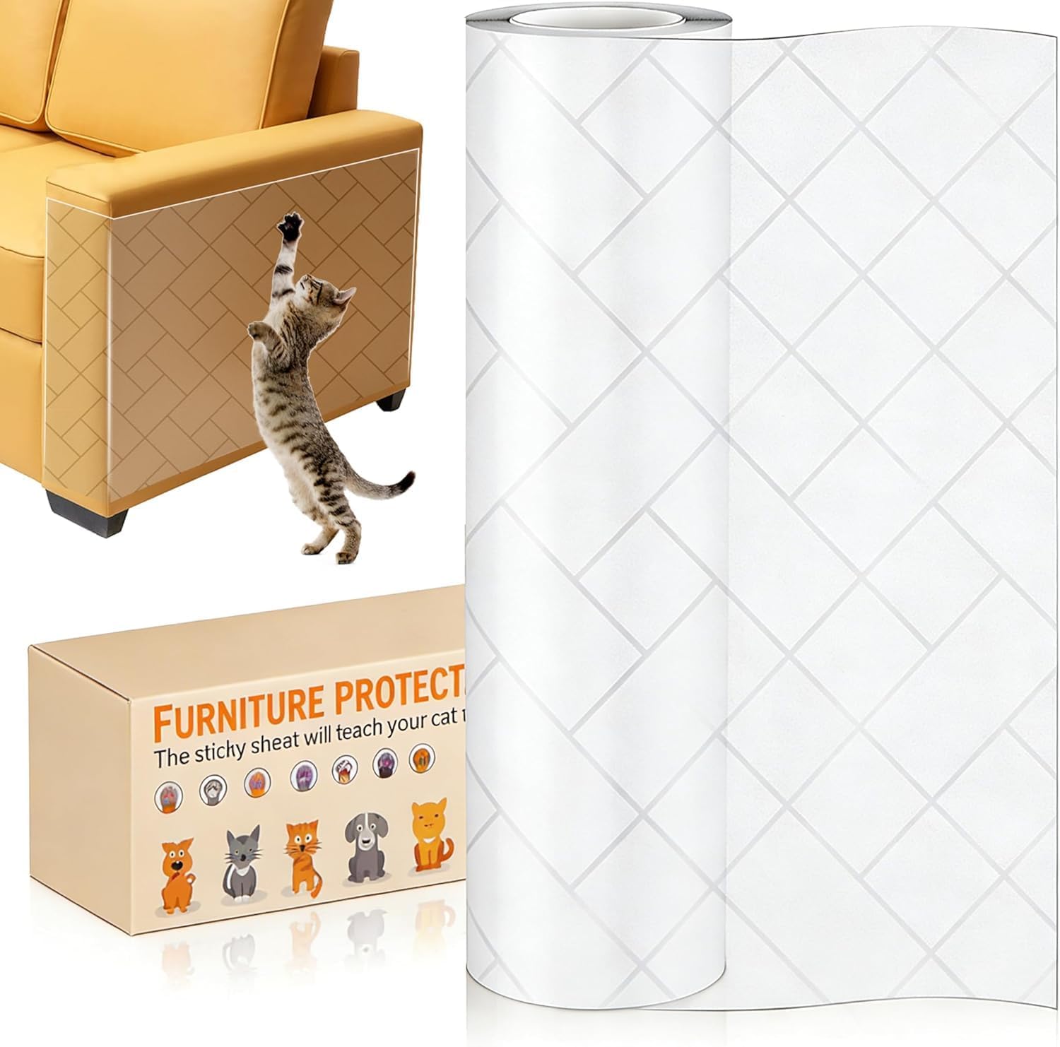 Ce rouleau est principalement orienté protection de canapé chat, mais il s’inscrit plus largement dans une logique de protection du mobilier. La description le cite pour des portes, murs (selon l’application), tables, armoires et autres meubles.