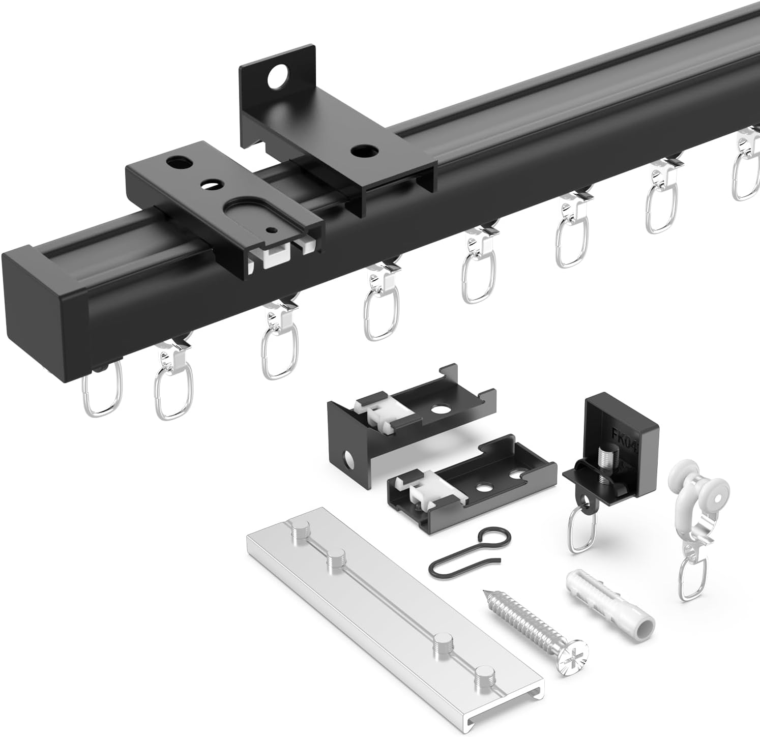 Rail de rideau plafond et mural en aluminium YLNANMI noir (1,6 m) – à couper et facile à installer