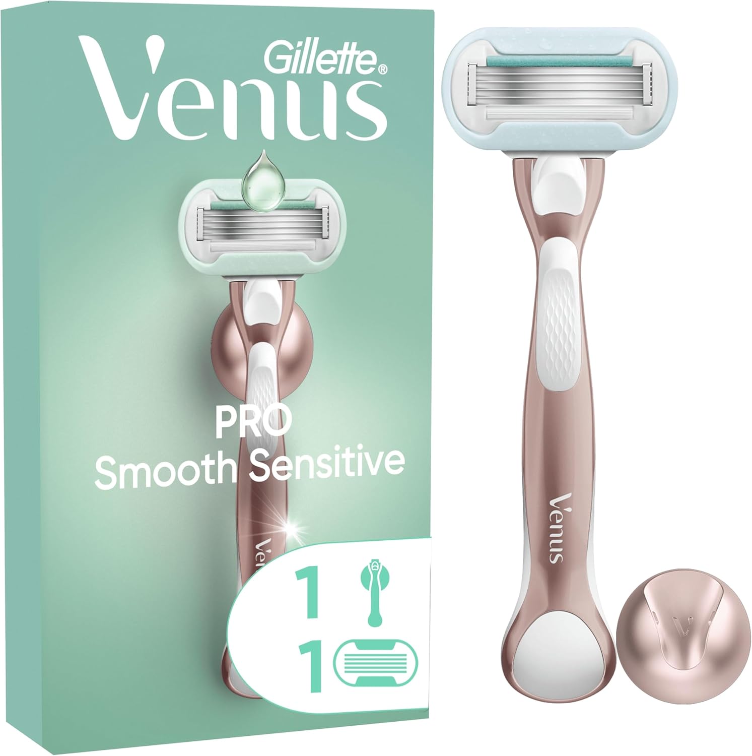 - Gillette Venus Pro ComfortGlide pour peaux sensibles : rasoir femme réutilisable + recharges