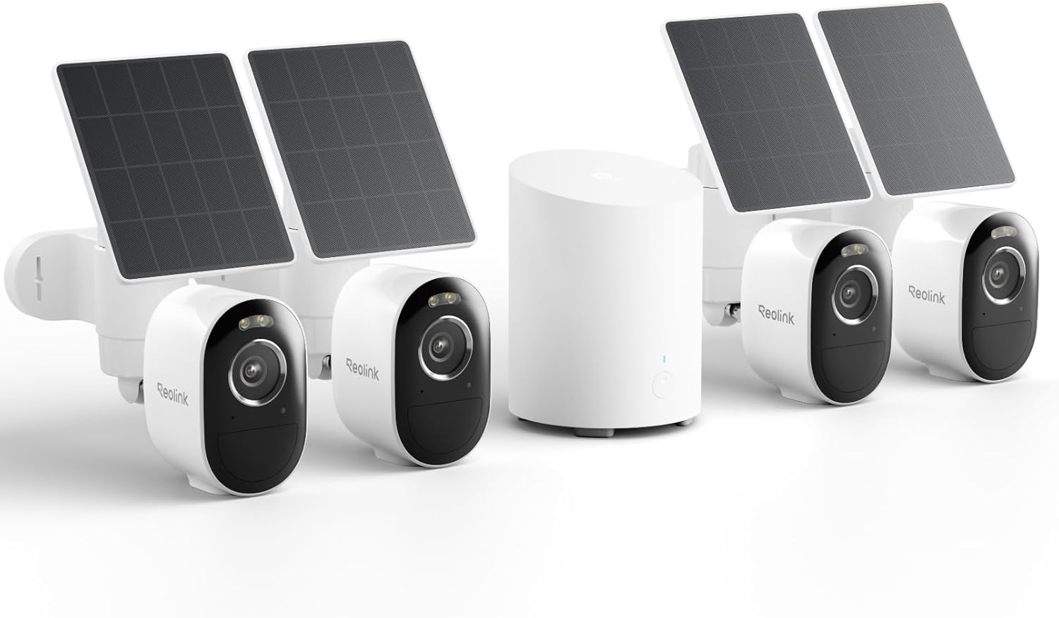 Reolink 5MP Caméra Solaire WiFi Extérieur sans fil avec vision nuit couleur, IA et Home Hub Mini+4X Argus 3 Pro