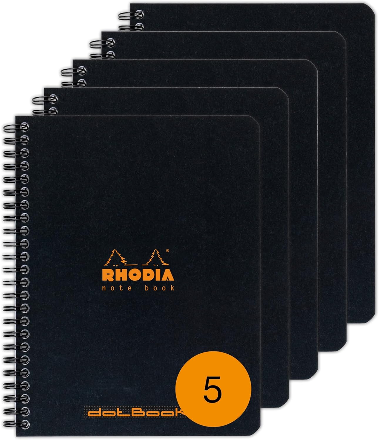 RHODIA 193439Cpack Cahier à Spirale Noir A5+ dot-grid, Lot de 5 — 160 pages détachables