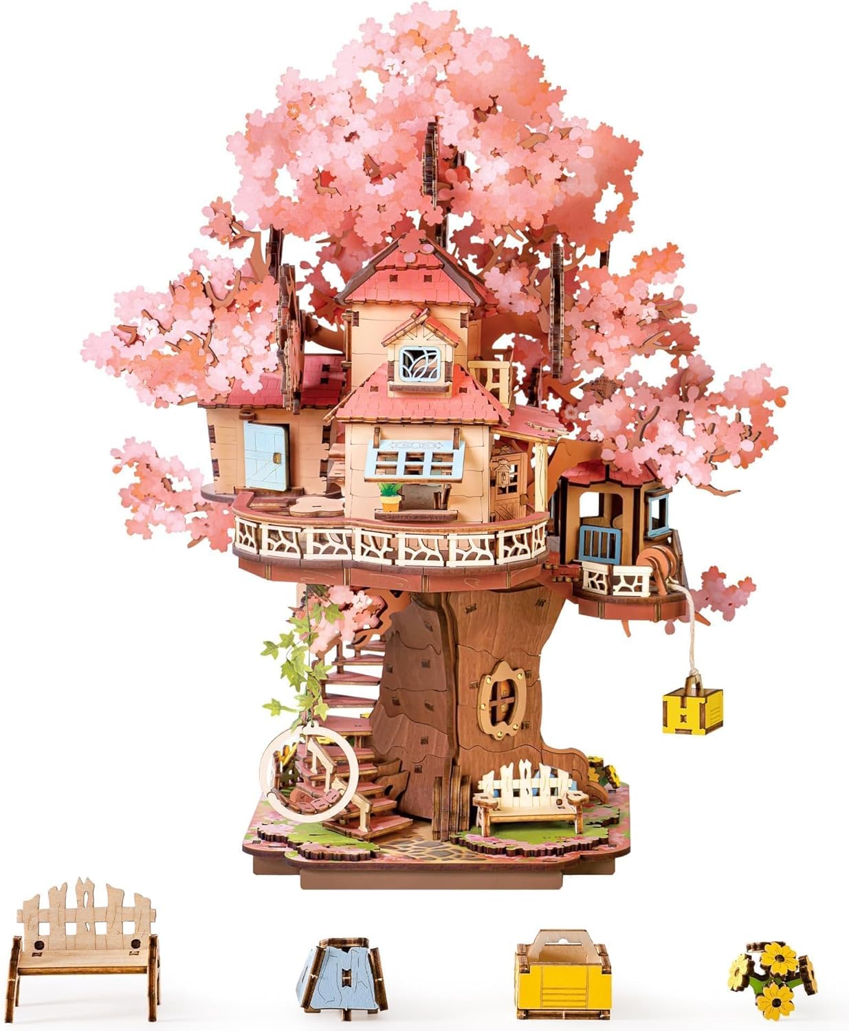 Ce kit ROBOTIME Sakura Tree House combine une maison sur arbre avec escalier en spirale, un columpio fonctionnel et une plateforme élévatrice. Les pièces sont précoupées au laser pour un ajustement net et une finition soignée. Le manuel illustré en plusieurs langues guide pas à pas, et la construction développe concentration et patience. 🎎