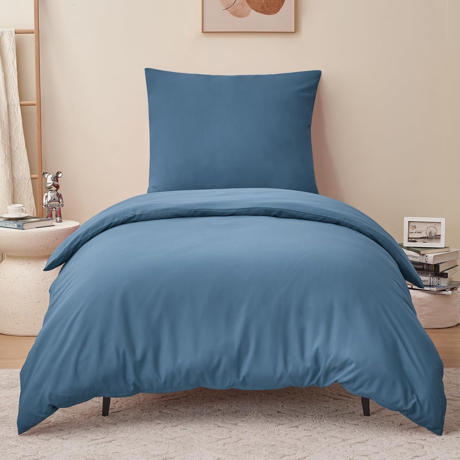 RUIKASI Housse de couette microfibre 140x200 cm bleu poussiéreux avec fermeture éclair (parure 1 personne)