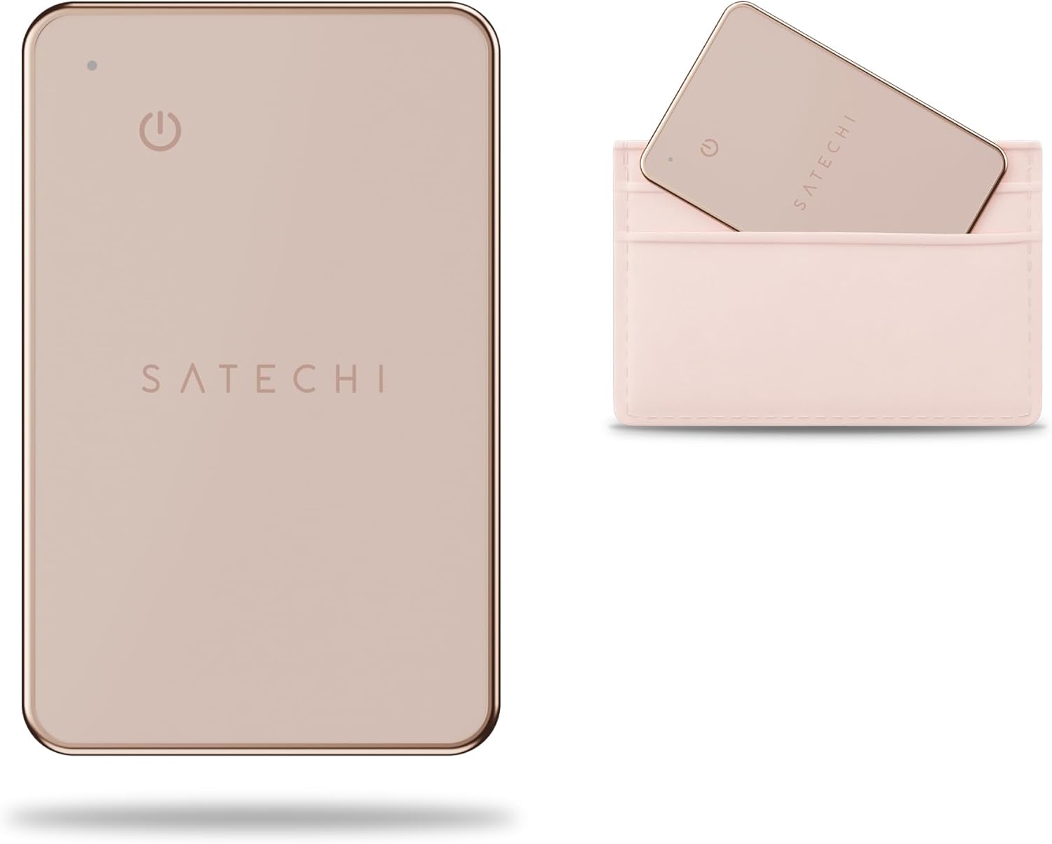 Satechi FindAll Wallet Tracker : carte de localisation Apple Find My avec charge sans fil et alerte sonore (rose)