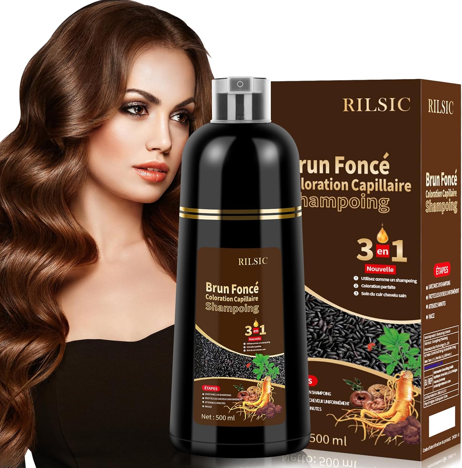 - Shampoing Colorant 3 en 1 – Coloration instantanée pour cheveux blancs, 500 ml