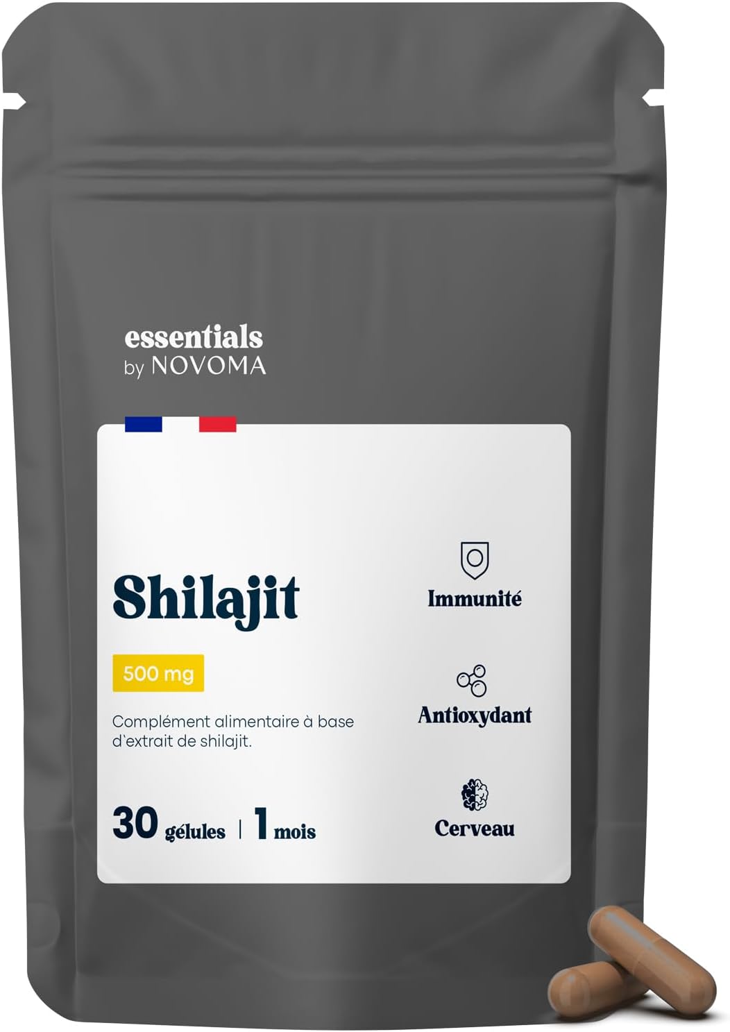 Shilajit Pure 500 mg – 50% d’acides fulviques (30 gélules) Essentials by Novoma