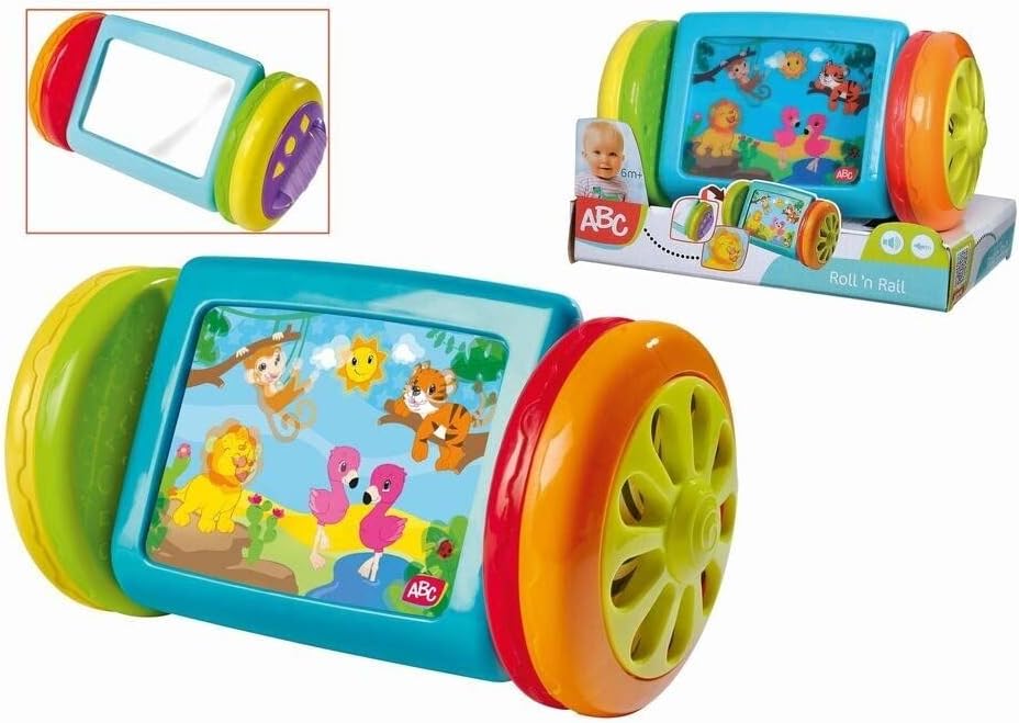 L’intérêt du concept tient surtout à la combinaison de deux choses. D’abord, il y a un côté miroir qui capte naturellement le regard. Ensuite, il y a une grande image animée avec de jolis animaux, et deux roues qui ajoutent un volet sonore et un côté “je fais bouger, donc ça réagit”. C’est typiquement le genre de jouet qui accompagne les premiers temps d’éveil, quand l’enfant commence à mieux coordonner ses gestes et à chercher des causes à ses actions.
