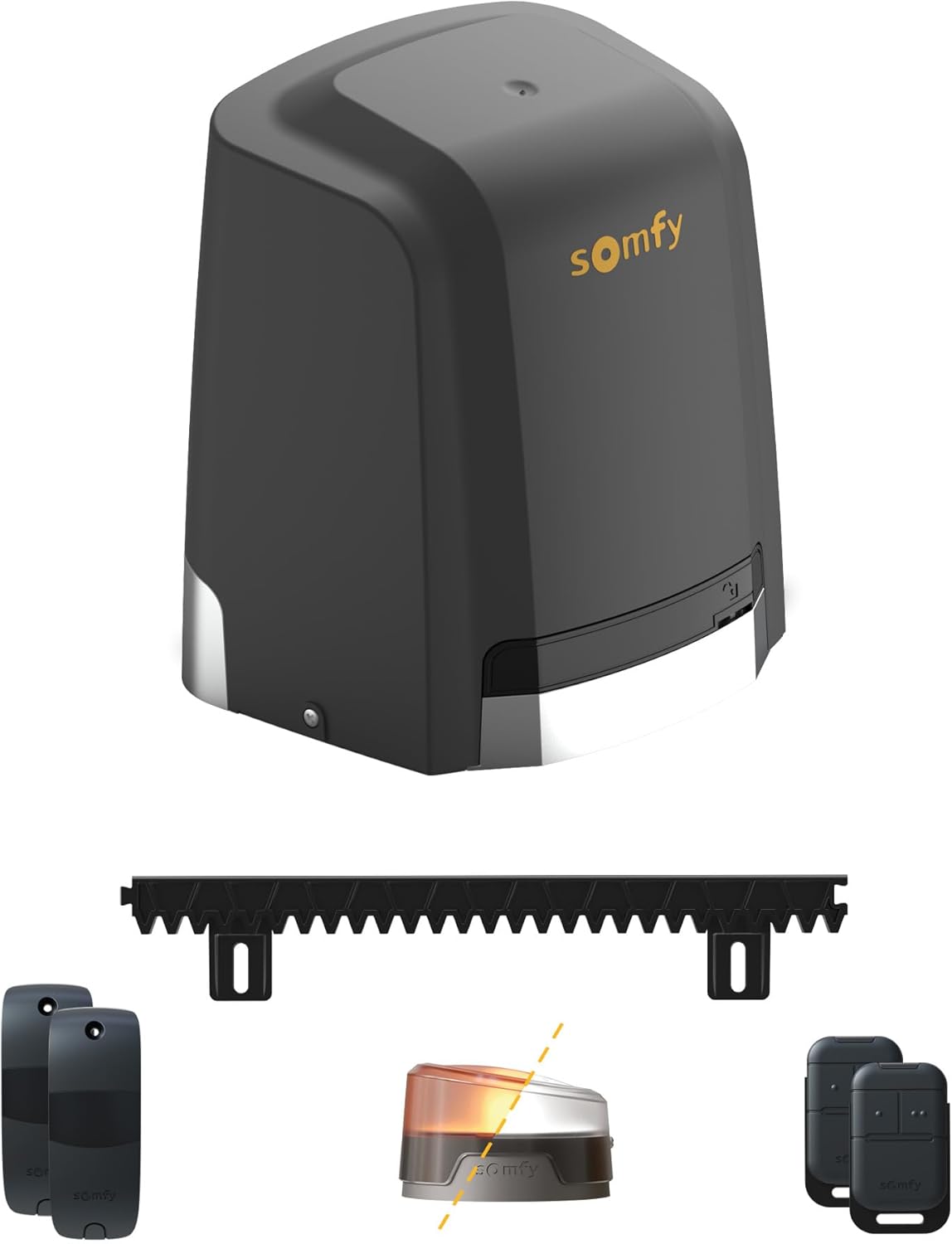 Somfy 1246285 – Motorisation pour portail coulissant Slidymoove 600, avec 2 télécommandes Keypop, batterie de secours et photocellules
