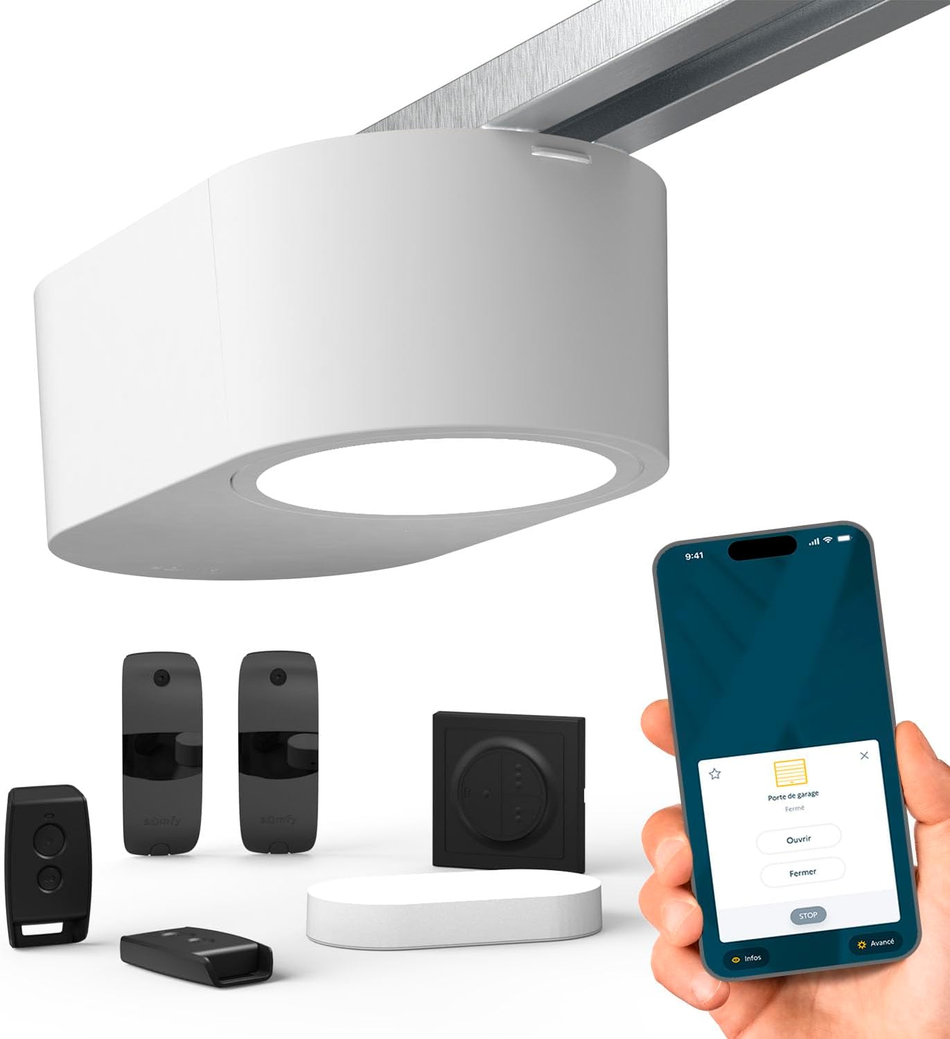 Somfy 1246362 Serenia 1100 io Connect — Pack de motorisation pour porte de garage (max 2,35 m x 4,5 m) avec kit de connectivité