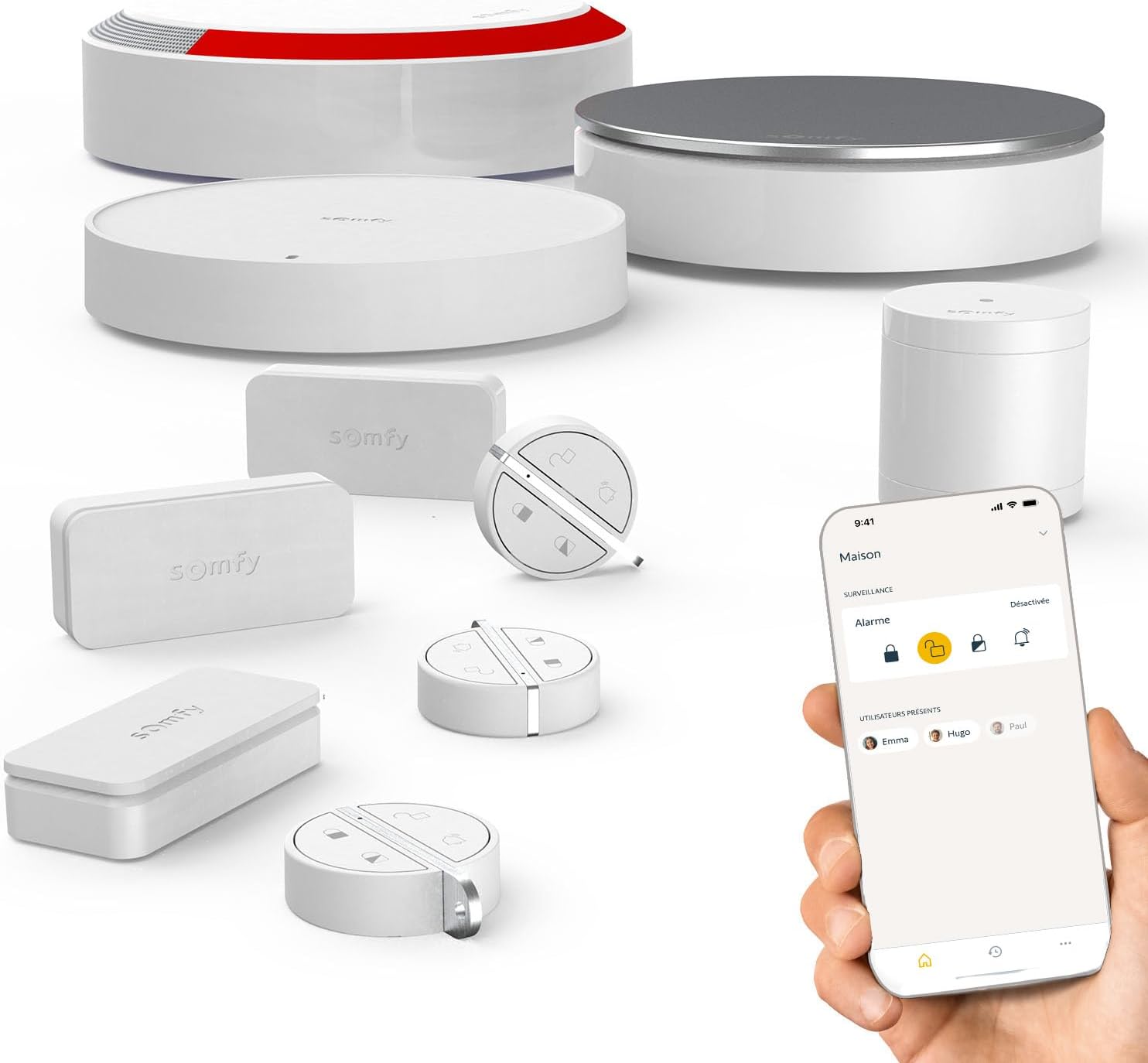 Pour piloter le système, Somfy met l’accent sur l’application Somfy Protect, gratuite. Le contrôle se fait depuis votre smartphone, avec des prérequis indiqués : Android 8,0+ et iOS 15+. Sur le papier, c’est appréciable parce que ça évite de dépendre uniquement d’une télécommande : vous armez/désarmez et vous suivez l’activité.
