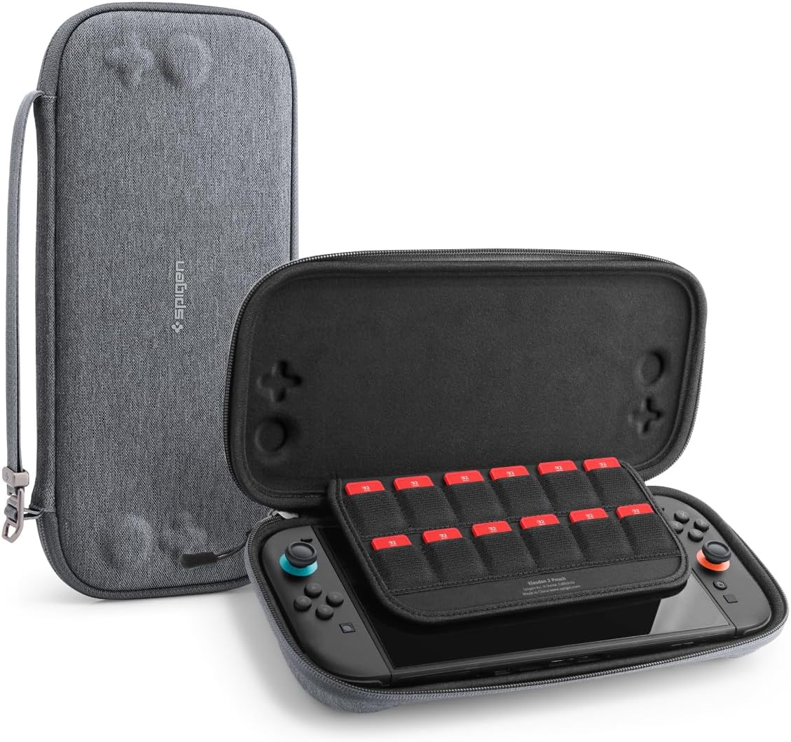 Si tu veux une pochette dédiée à la Nintendo Switch 2 (2025), compacte et orientée “transport”, la Spigen Klasden 2 se défend clairement : protection contre les rayures/chocs, rangement intégré jusqu’à 12 cartes, et une boucle multifonctionnelle qui donne de la flexibilité.