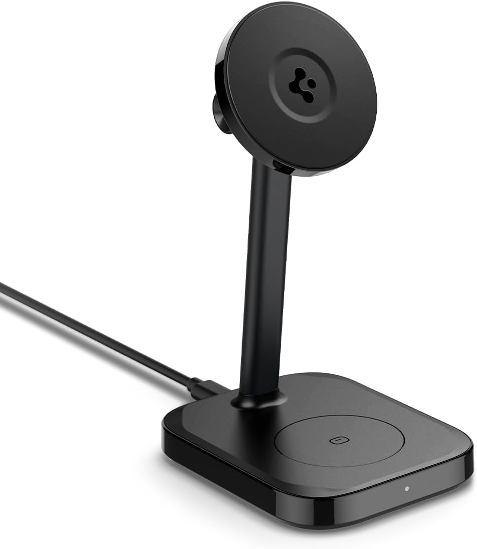 Spigen MagFit Qi2 15W Chargeur Induction Rapide 2-en-1 avec support réglable jusqu’à 45° (câble USB‑C inclus)