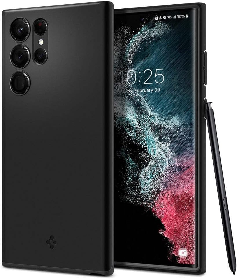 Spigen Thin Fit pour Samsung Galaxy S22 Ultra 5G (noir) – coque hybride fine et mate