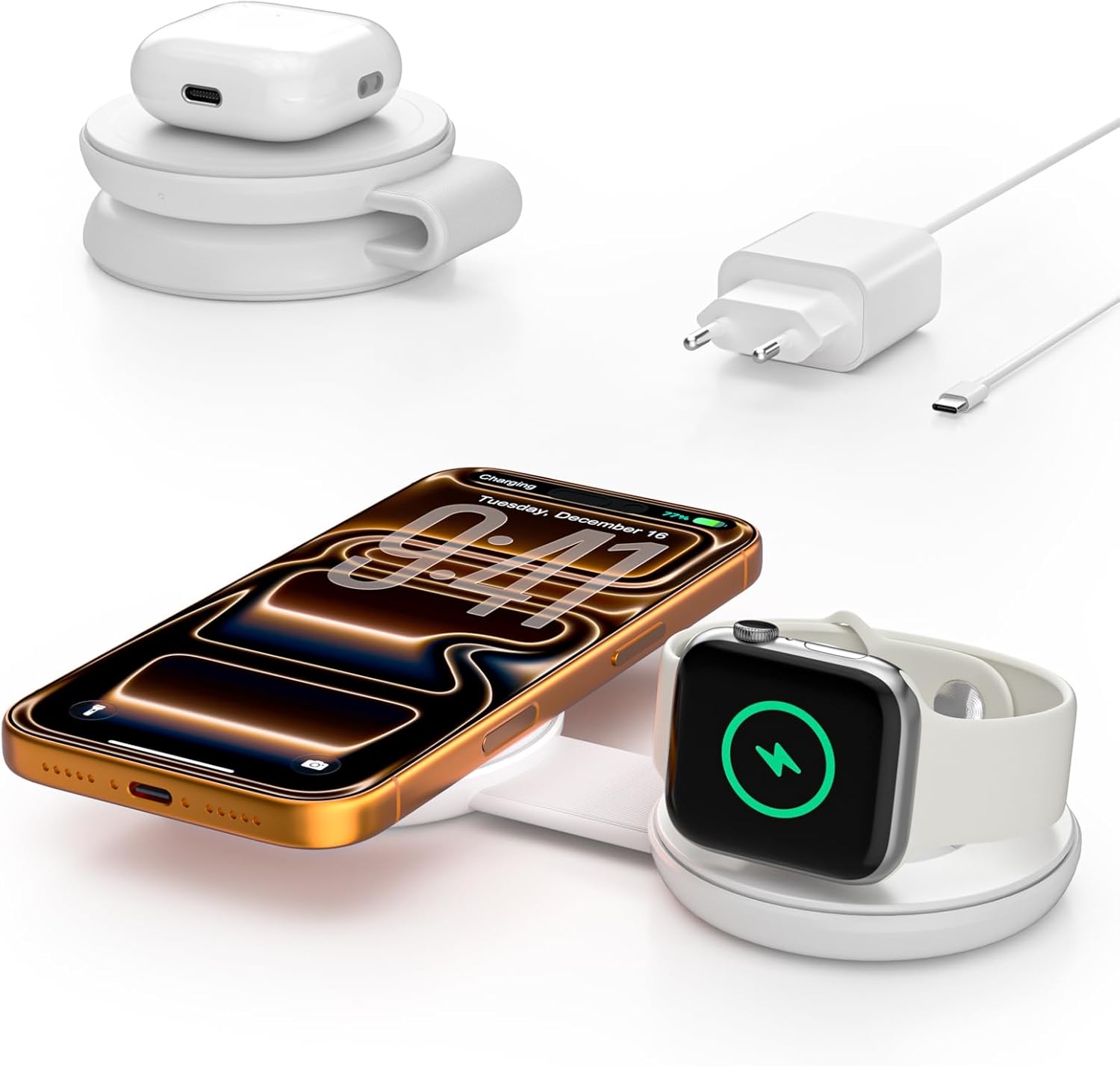 Ça vaut le coup si tu cherches une station pliable et compacte pour recharger plusieurs appareils Apple en une seule installation, avec un alignement Mag-Safe pour iPhone et une approche Qi2 (et que tu acceptes que la vitesse dépendra de ton modèle).