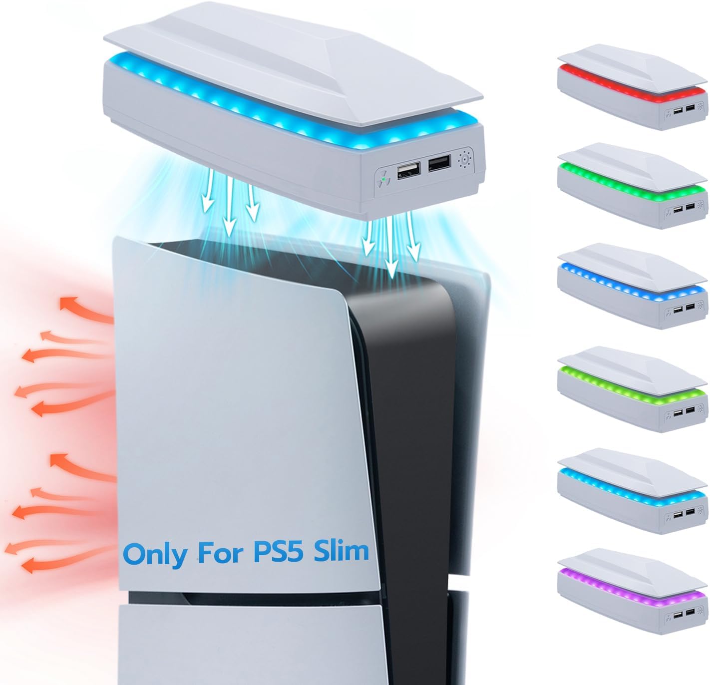 - Tolesum Ventilateur de refroidissement pour PS5 Slim avec éclairage LED RGB (USB arrière) – Noir