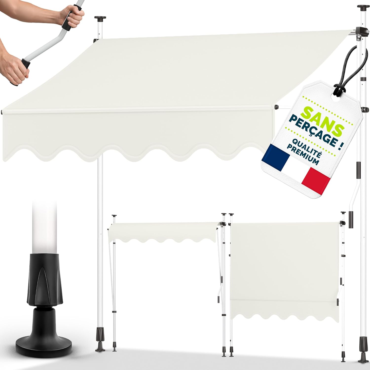 - Type : store banne manuel rétractable (avec manivelle)