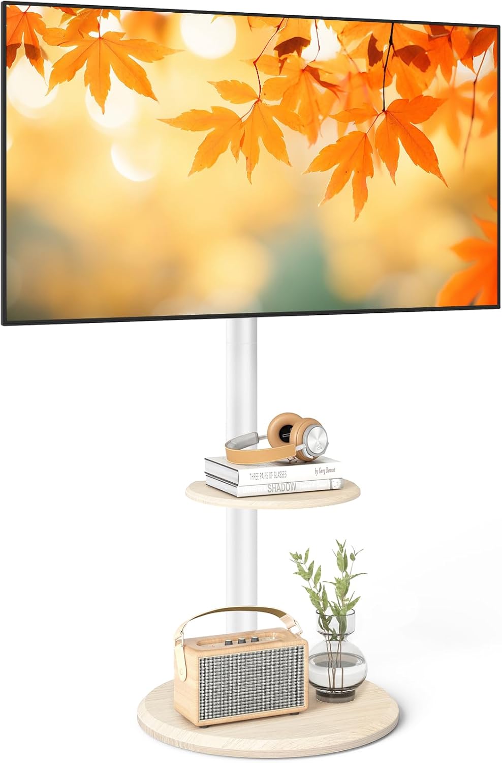 - RFIVER Support TV sur pied à roulettes blanc, hauteur réglable et pivotant (VESA jusqu’à 400×400 mm)