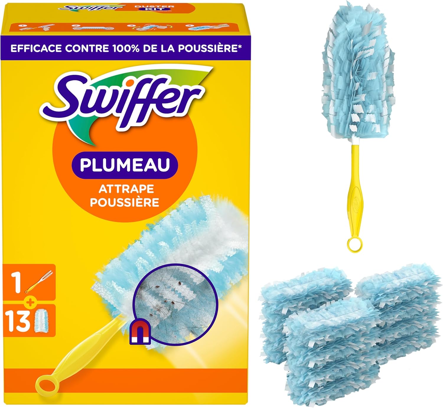 Swiffer Duster Plumeau Kit de démarrage (1 manche + 13 recharges) anti-poussière