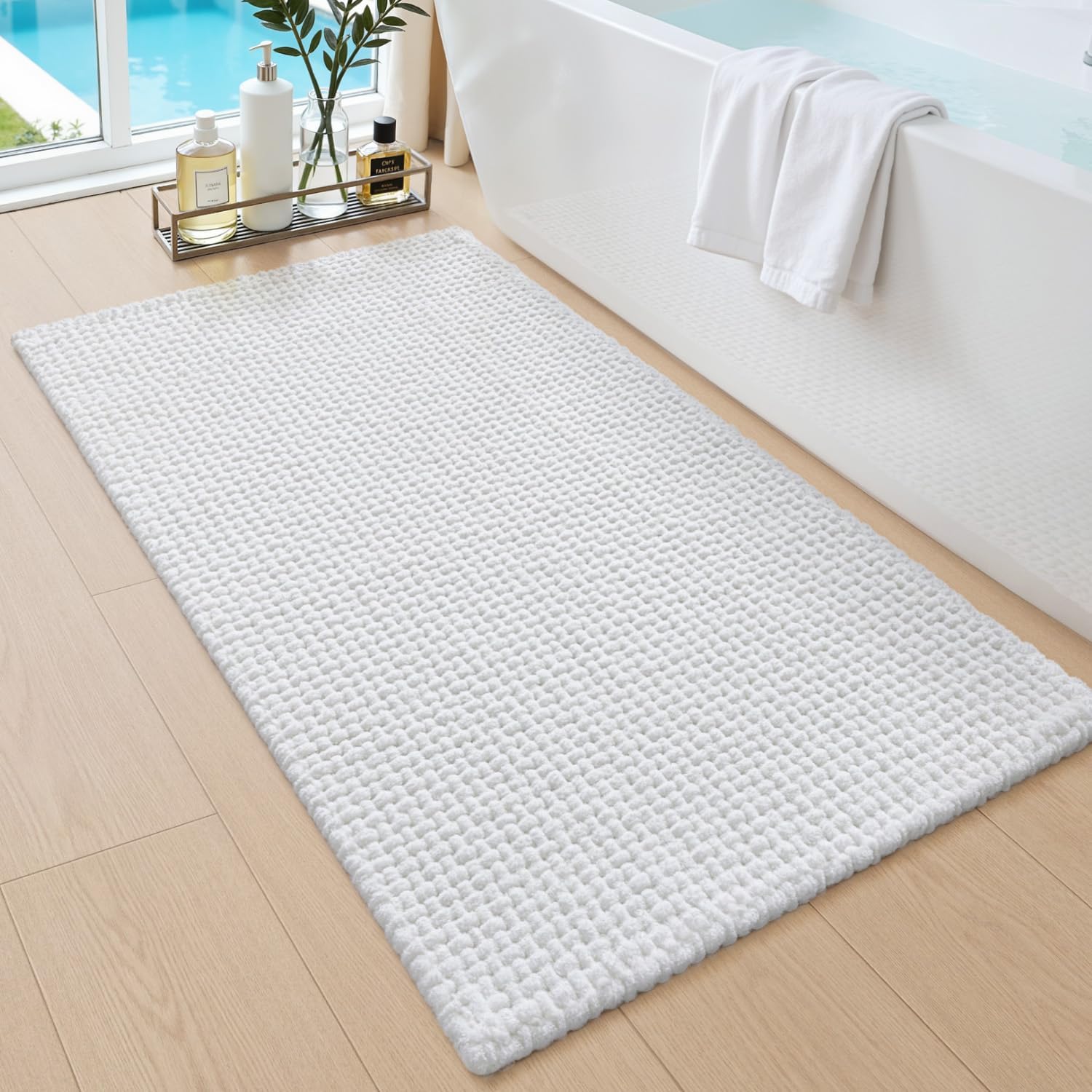 Tapis de bain DEXI 60 x 90 cm en chenille antidérapant, blanc