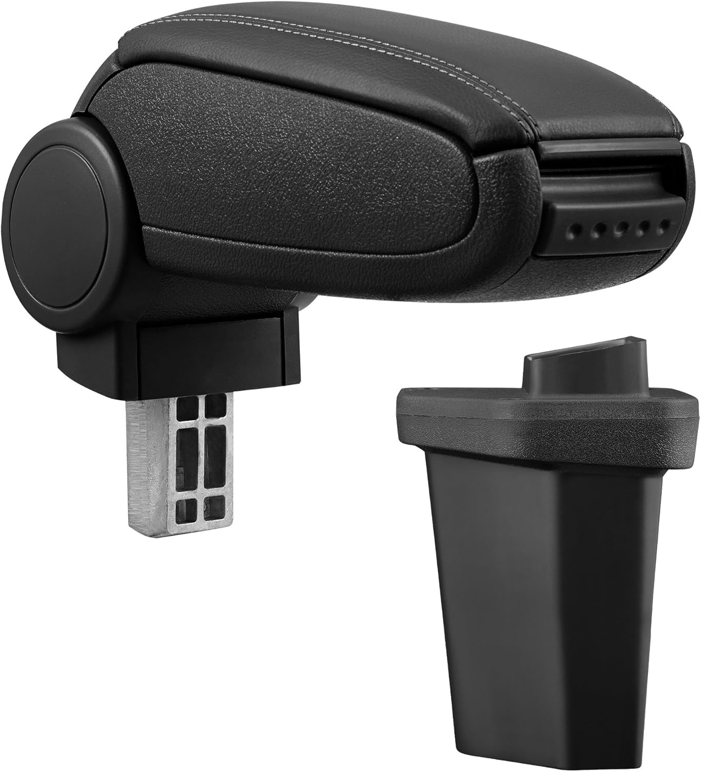Le design est volontairement discret : noir, avec coutures noires, et une finition en cuir-synthétique. Ce genre de coloris se marie facilement avec l’habitacle, surtout si ta voiture est déjà dans des tons sombres. Le rembourrage, lui, sert d’amortisseur d’usage : l’appui est plus agréable qu’un accoudoir totalement “plat”, surtout quand la position des bras reste la même pendant un moment.