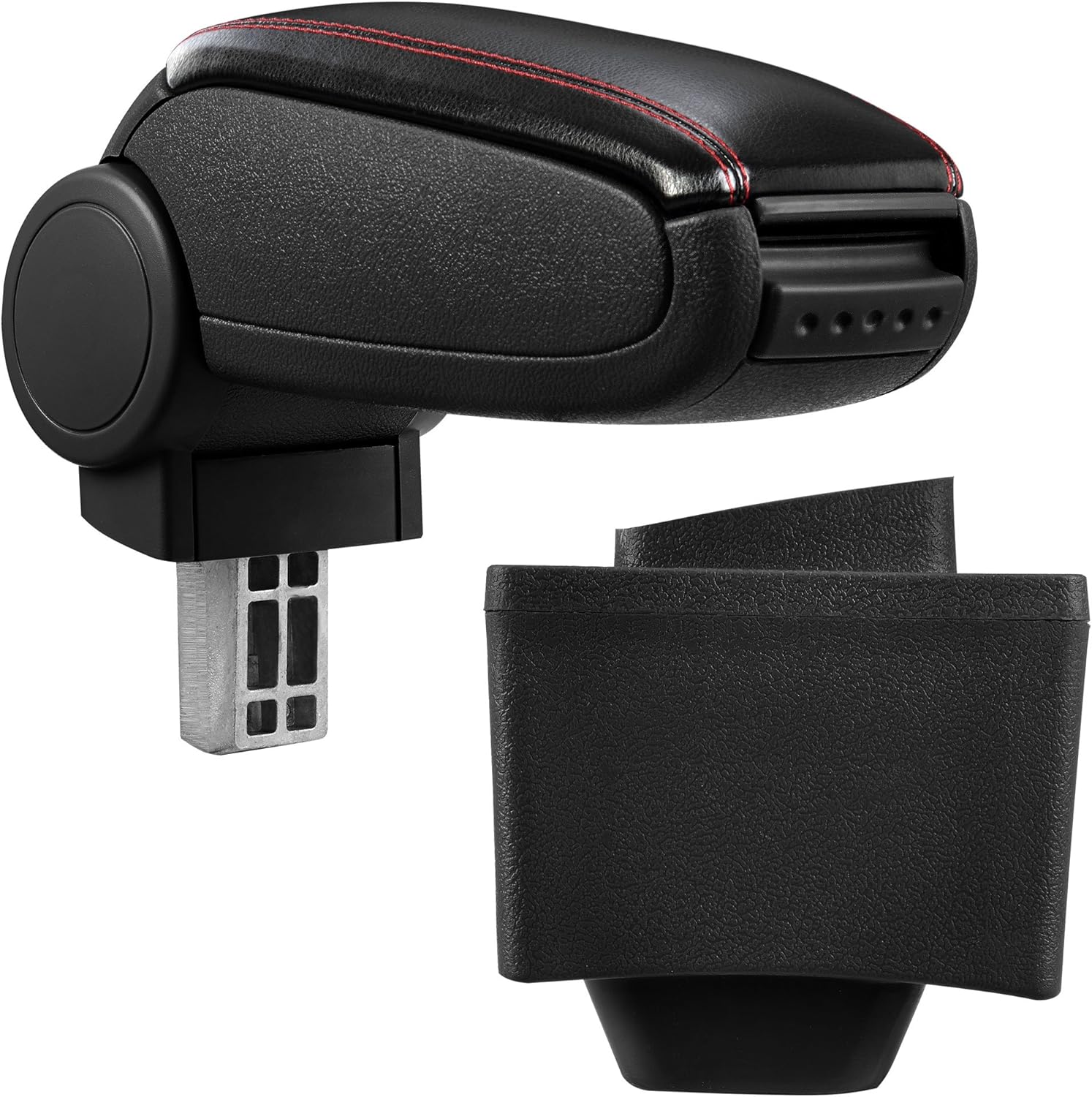 - Accoudoir central pro.tec pour Renault Clio IV (X98) à partir de 2012, rembourré avec compartiment, noir à coutures rouges