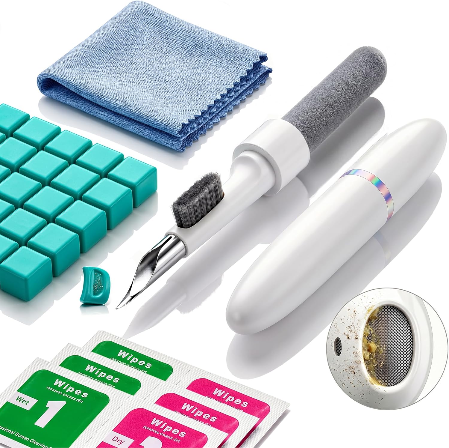 Pour un usage concret, par exemple : - vous nettoyez d’abord la grille/les recoins des écouteurs avec la brosse ou la pointe (selon l’endroit), - puis vous utilisez un morceau de pâte pour “attraper” ce qui reste dans la texture, - et vous terminez en essuyant la partie externe au chiffon microfibre.