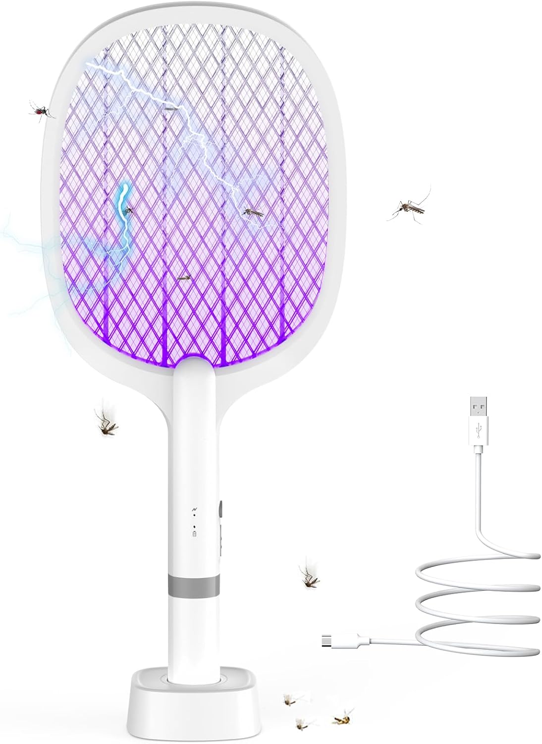 TEINNGO Raquette électrique anti-insectes 5000V rechargeable USB-C (2000 mAh) avec base