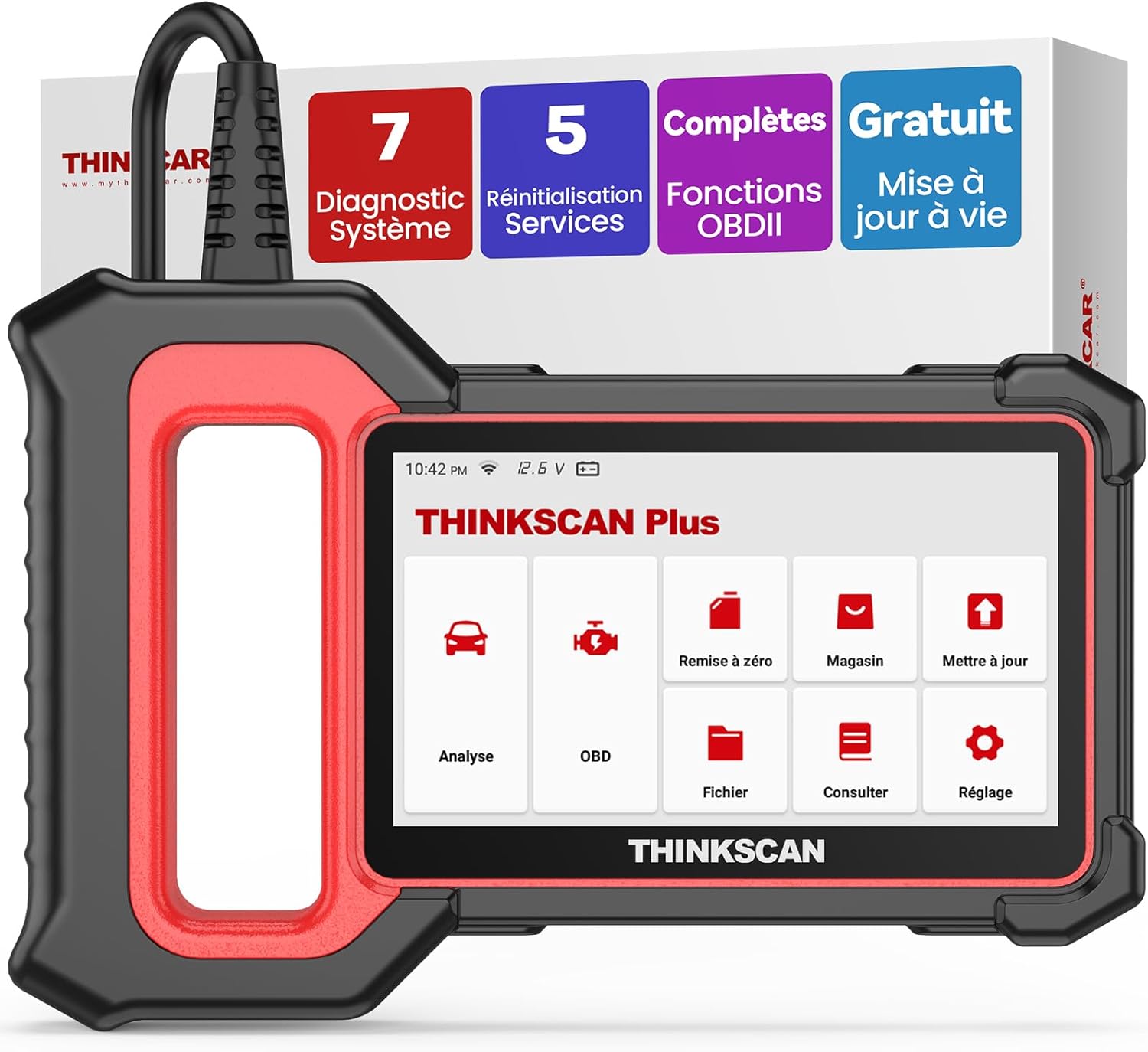 Thinkcar ThinkScan Plus S7 : valise diagnostic auto OBD2 française avec 28 services de réinitialisation