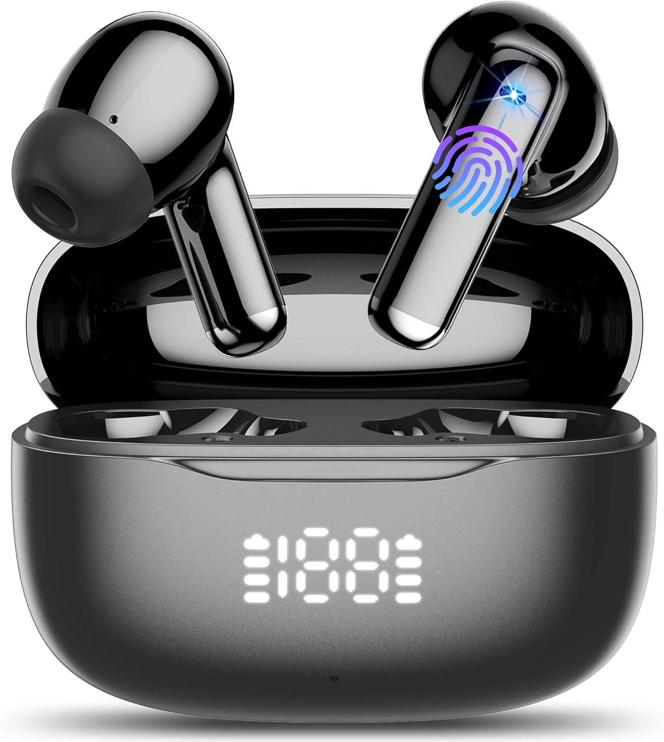 - Ordtop Écouteurs Bluetooth 5.4 sans fil i13, micro CVC anti-bruit, sport étanche IP7 et écran LED