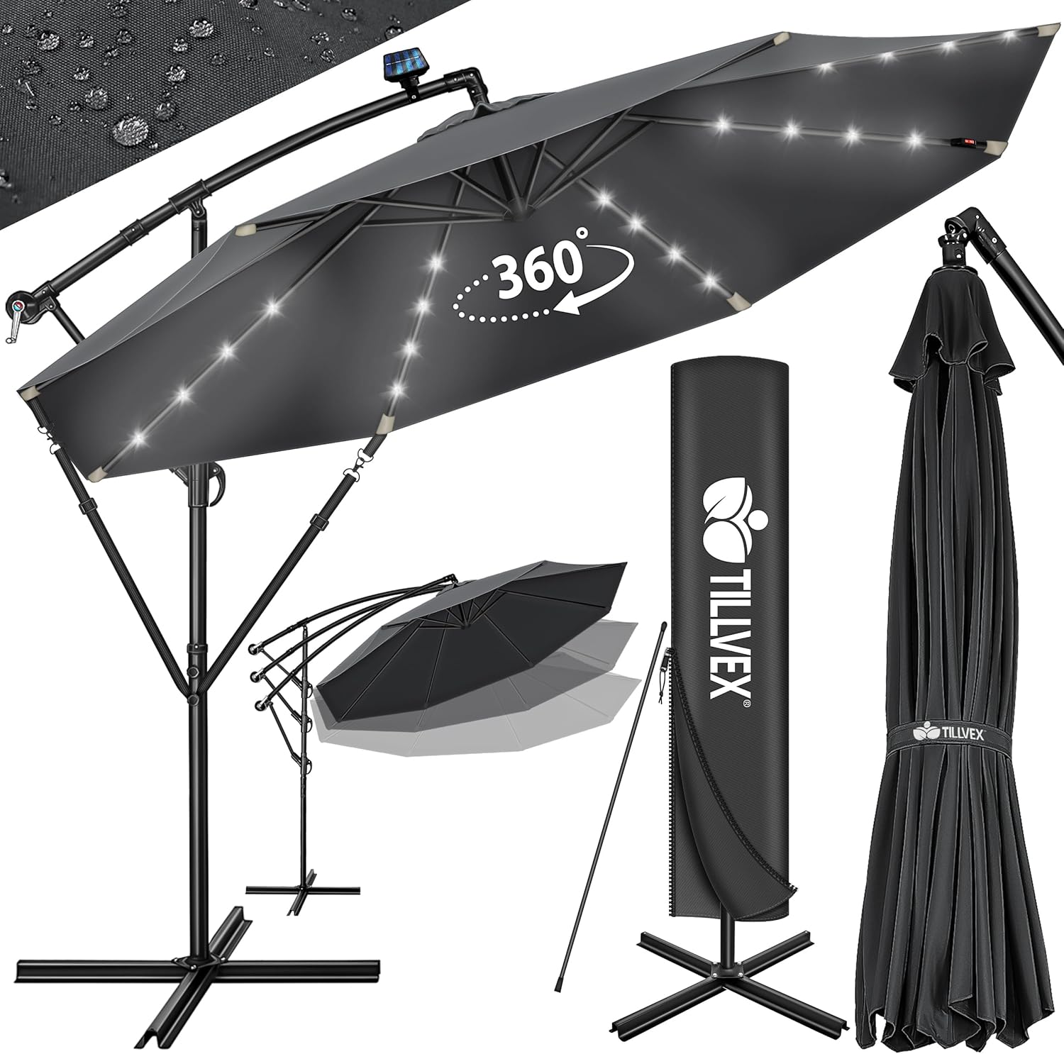 Tillvex parasol déporté LED solaire hexagonale de 3 m avec manivelle