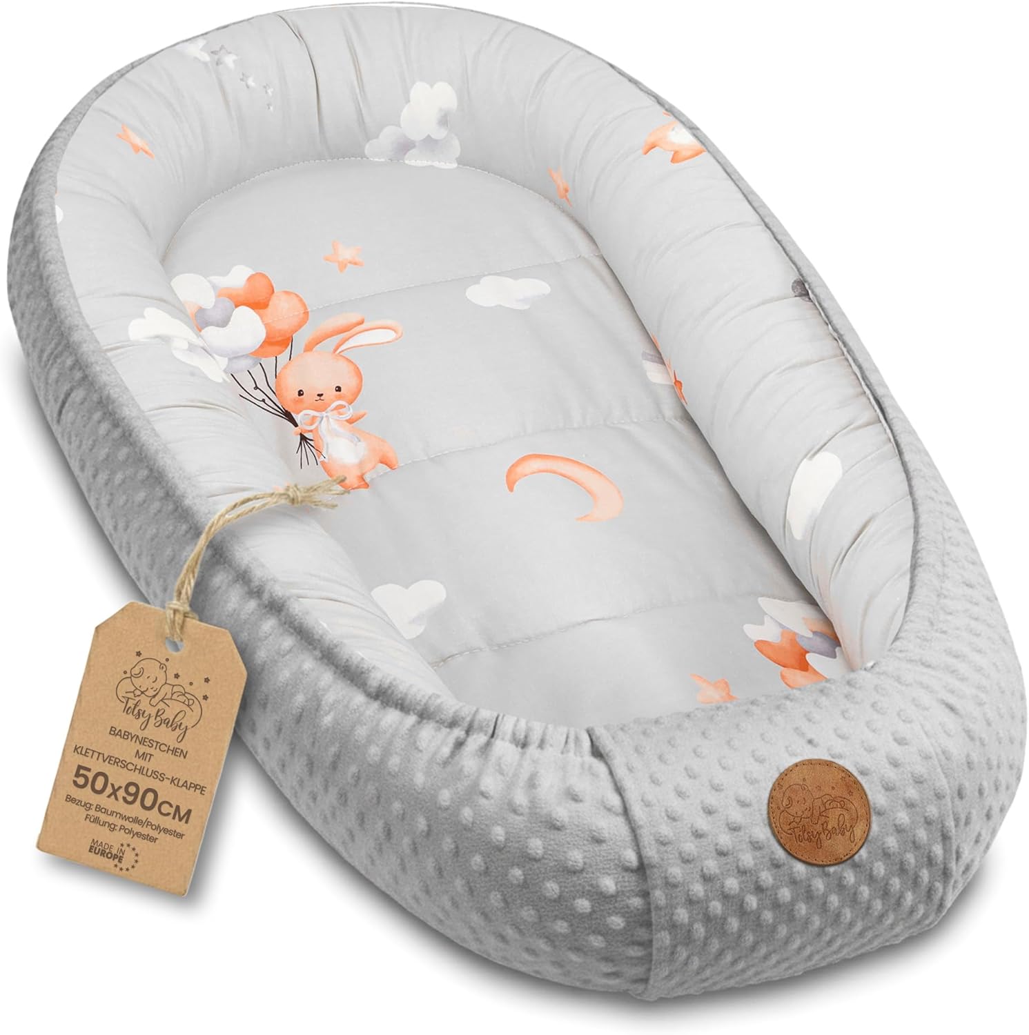 L’ajustement est un point clé : le réducteur serait ajustable en largeur grâce à un cordon en coton. La description précise un fonctionnement assez concret : le cordon peut être desserré pour créer plus d’espace et étendre le cocon jusqu’à 90 cm (avec une longueur de 70 cm au départ).