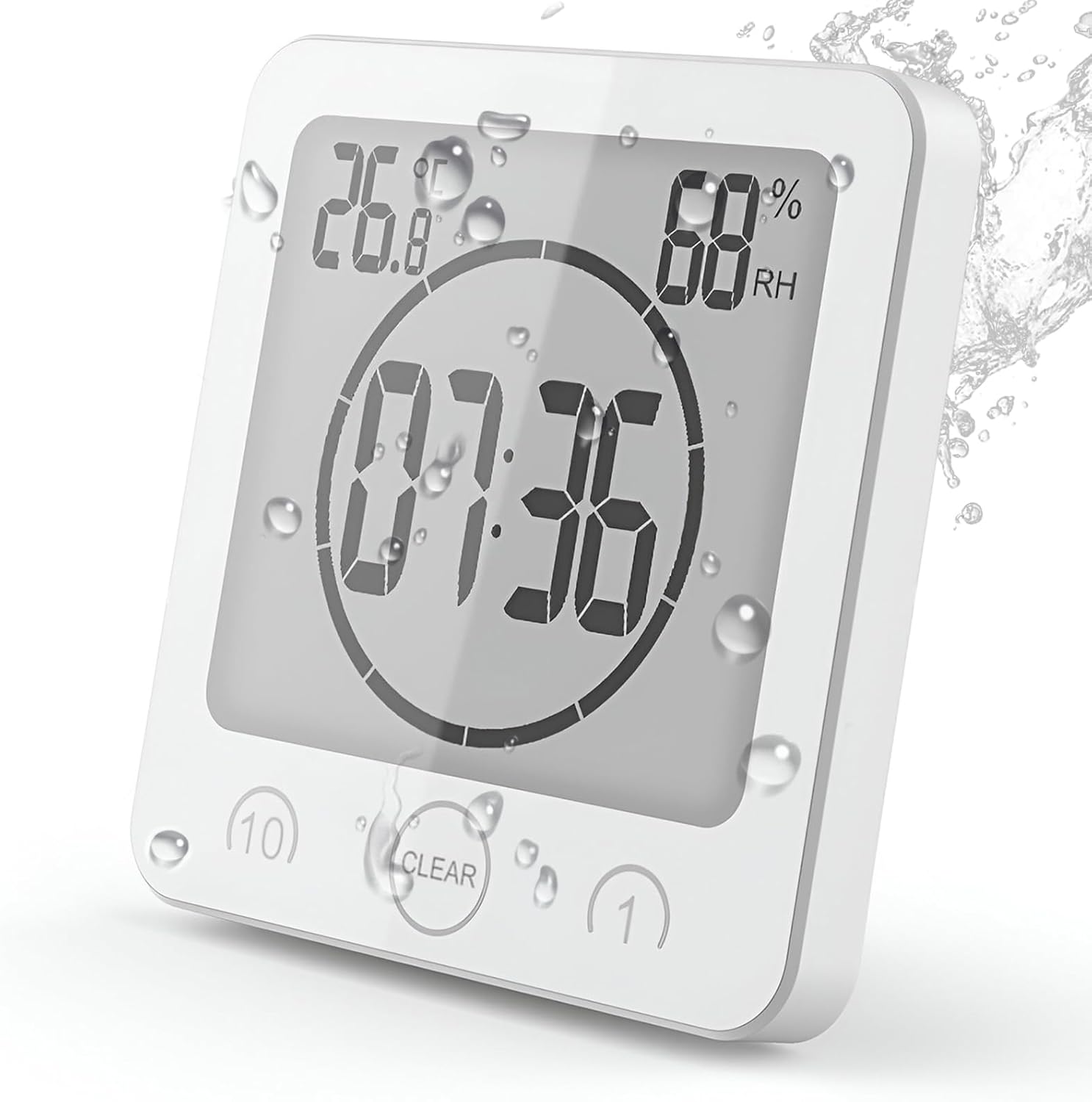 VORRINC horloge de salle de bain numérique à ventouse avec LCD, température et humidité