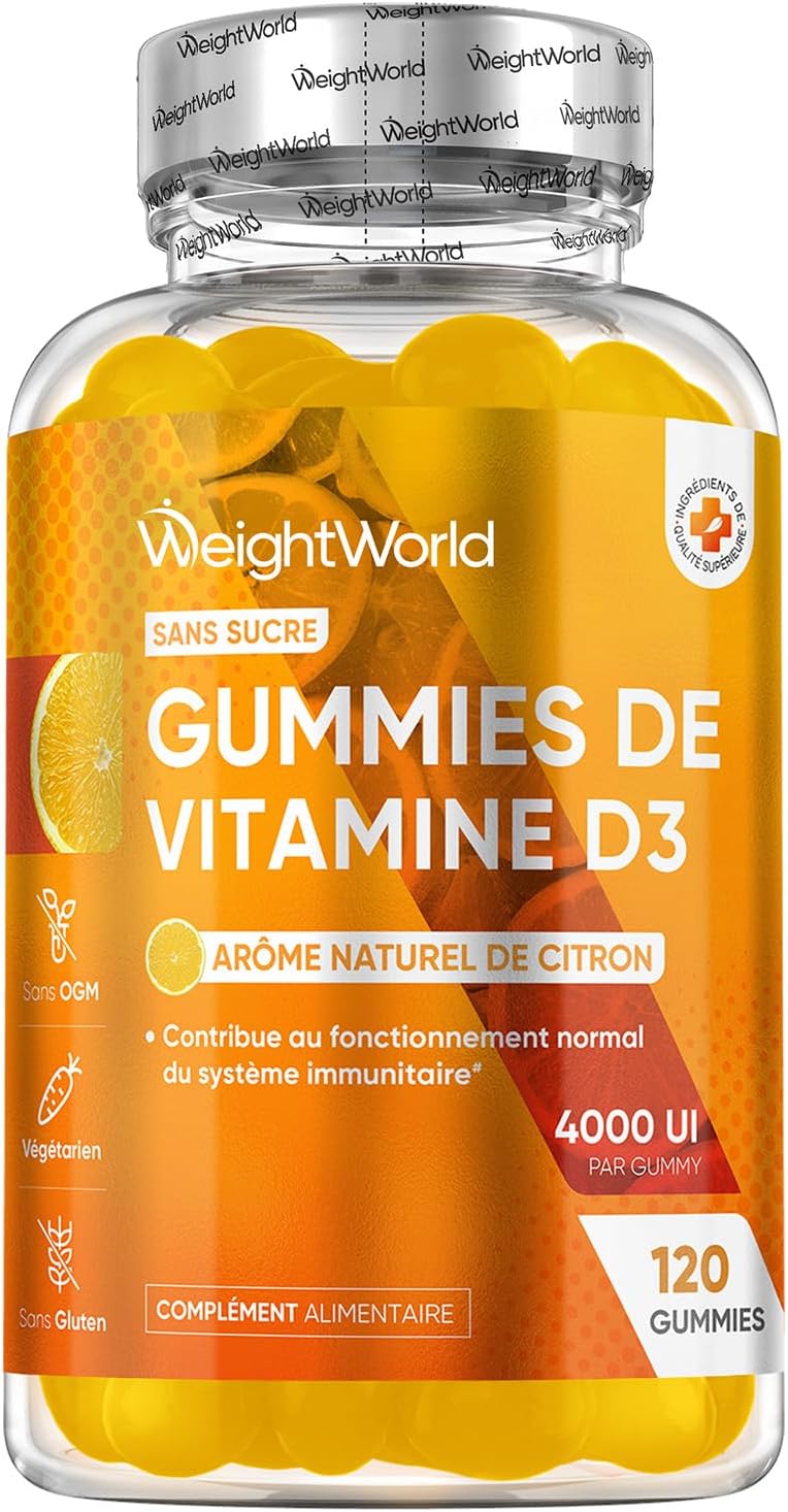 La vitamine D3 est l’un des compléments les plus courants quand on veut soutenir les apports en vitamine D au fil de l’année. Ici, WeightWorld propose une formule en gummies (gélifiés à croquer), à base de cholécalciférol. Sur le papier, l’intérêt est double : c’est une manière “simple à prendre” si vous n’aimez pas les comprimés, et c’est aussi une dose de 4000 UI par portion.