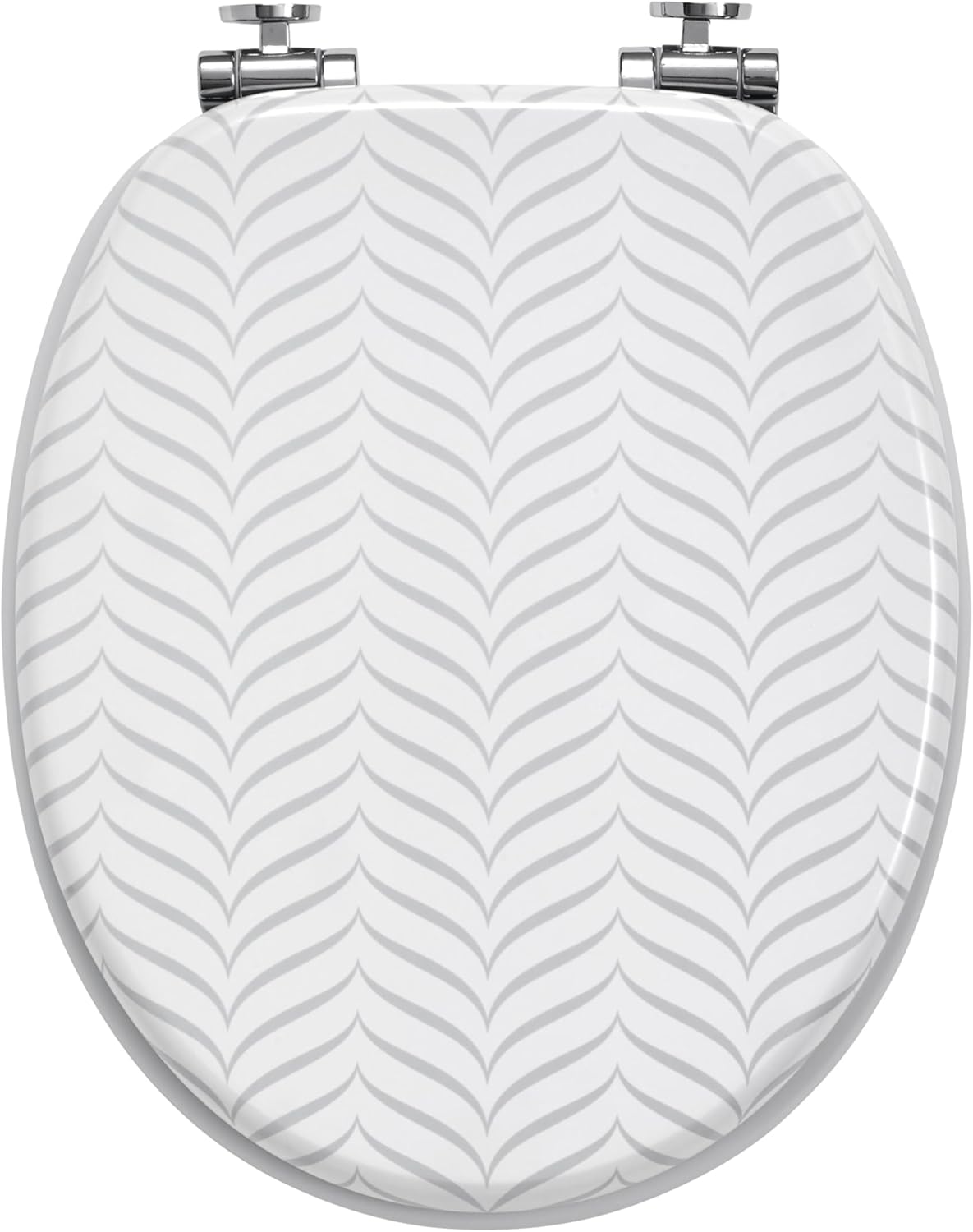 Cet abattant WC Woody Chevrons se distingue par son esthétique bois MDF en blanc mat et son concept de “soft close” qui permet une fermeture lente et silencieuse. Conçu pour apporter du confort thermique et une sensation plus robuste que le plastique, il s’insère dans des cuvettes standards grâce à un entraxe réglable.