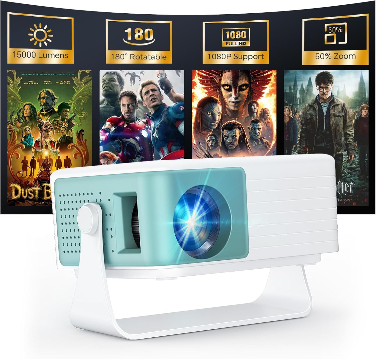 Le vidéoprojecteur portable WOLFANG propose une solution simple pour transformer une chambre en petit home cinéma, en combinant compatibilité mobile et réglages automatiques pour une image propre. Il supporte la lecture 1080P et affiche une clarté native en 720P, ce qui convient aux soirées films, aux sessions de jeux et aux présentations informelles.