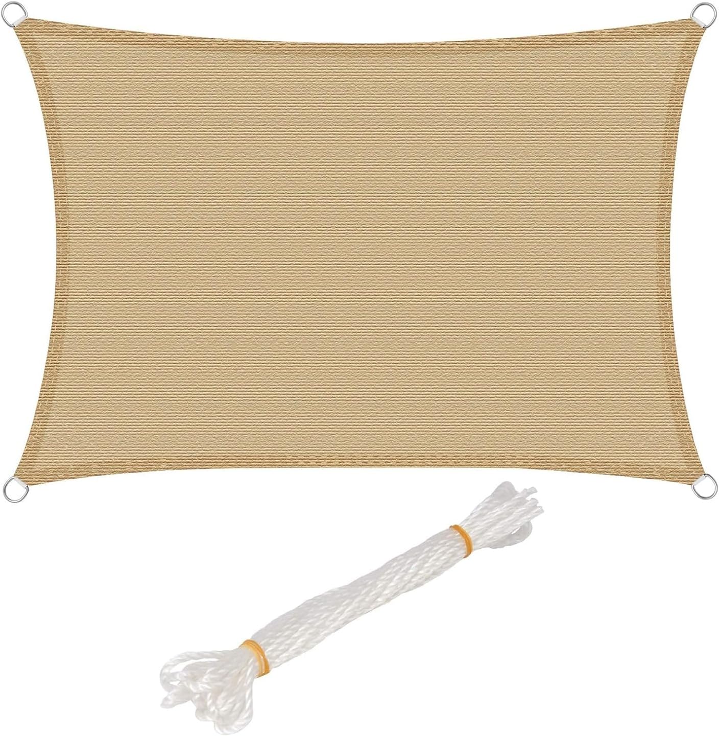 Il y a aussi un vrai côté “facile à vivre” dans le montage. Les quatre coins reçoivent un anneau en forme de D en acier inox 304 (Ø environ 3 cm) et des cordes PP d’environ 1,5 m sont prévues. Concrètement, l’idée est de pouvoir accrocher la voile rapidement à l’aide de ses points de fixation (arbre, mur, poteaux hauts). Le système est pensé pour être réglable, et c’est souvent ce qui fait qu’une voile d’ombrage est agréable à utiliser : quand ce n’est pas compliqué, on la sort et on la replace plus volontiers.
