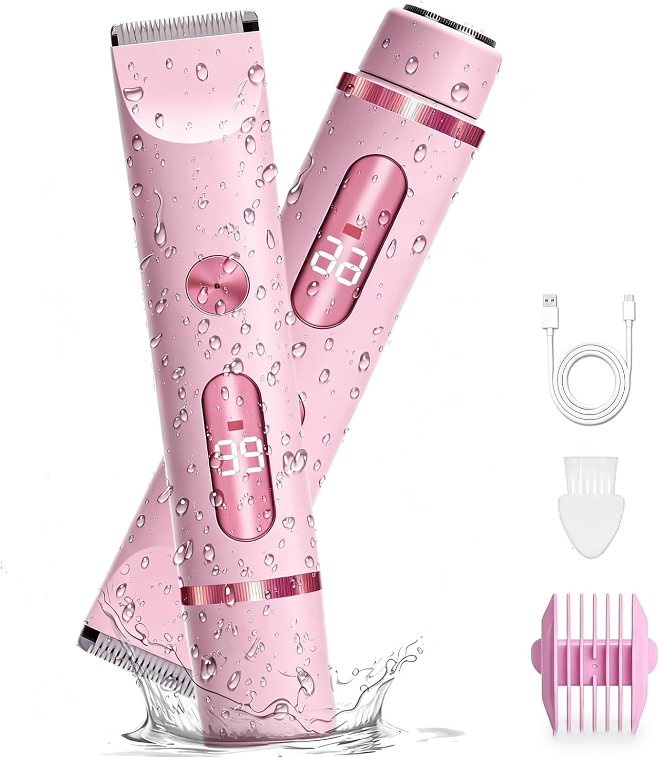 XkuiHF 2 en 1 Rasoir Électrique Femme – Rase doux et pratique pour le visage, le corps et les zones sensibles (IPX7, Rose)