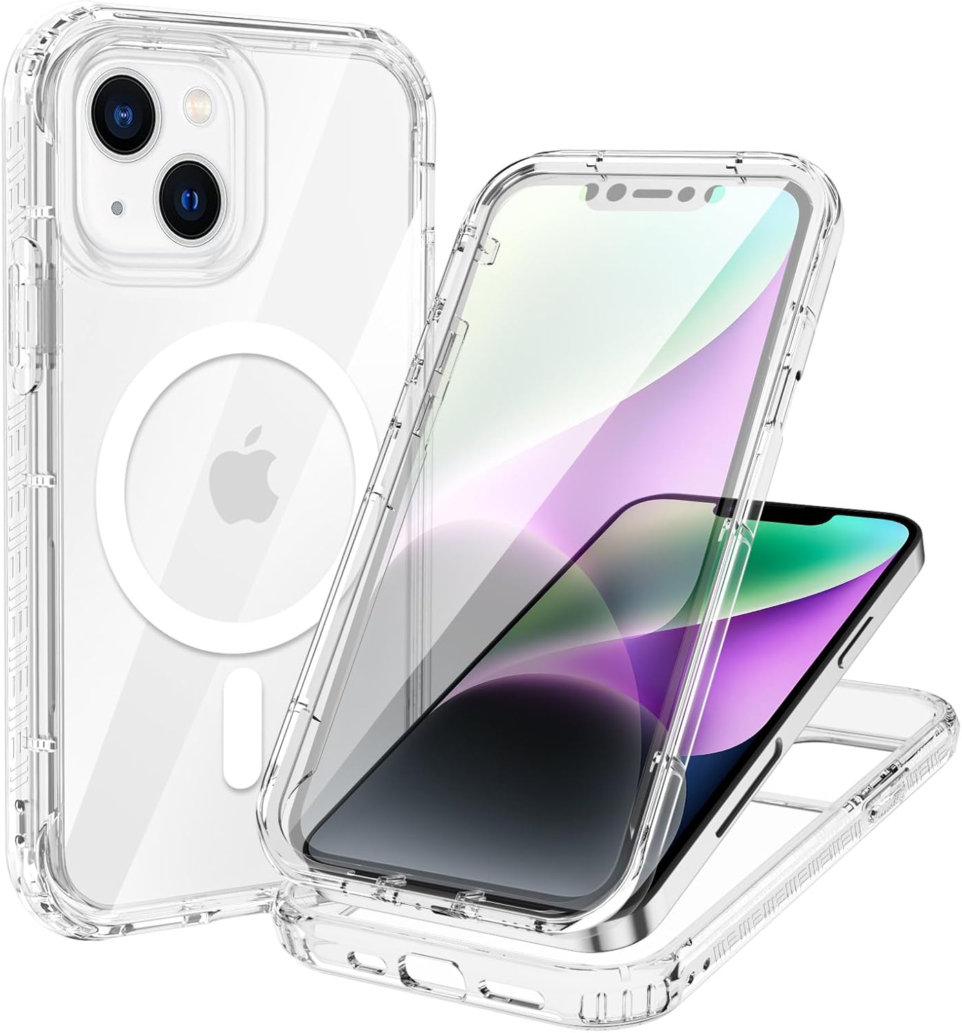 XTCASE Coque iPhone 14 magnétique compatible MagSafe transparente avec protection d’écran intégrée
