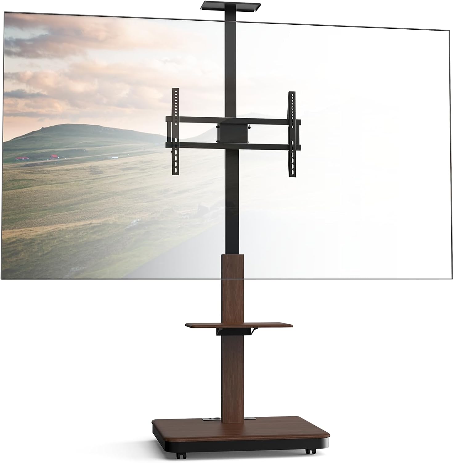 - TVON support TV sur pied à roulettes pour écrans 40 à 86 pouces, hauteur réglable et socle en bois (VESA jusqu’à 600x400)